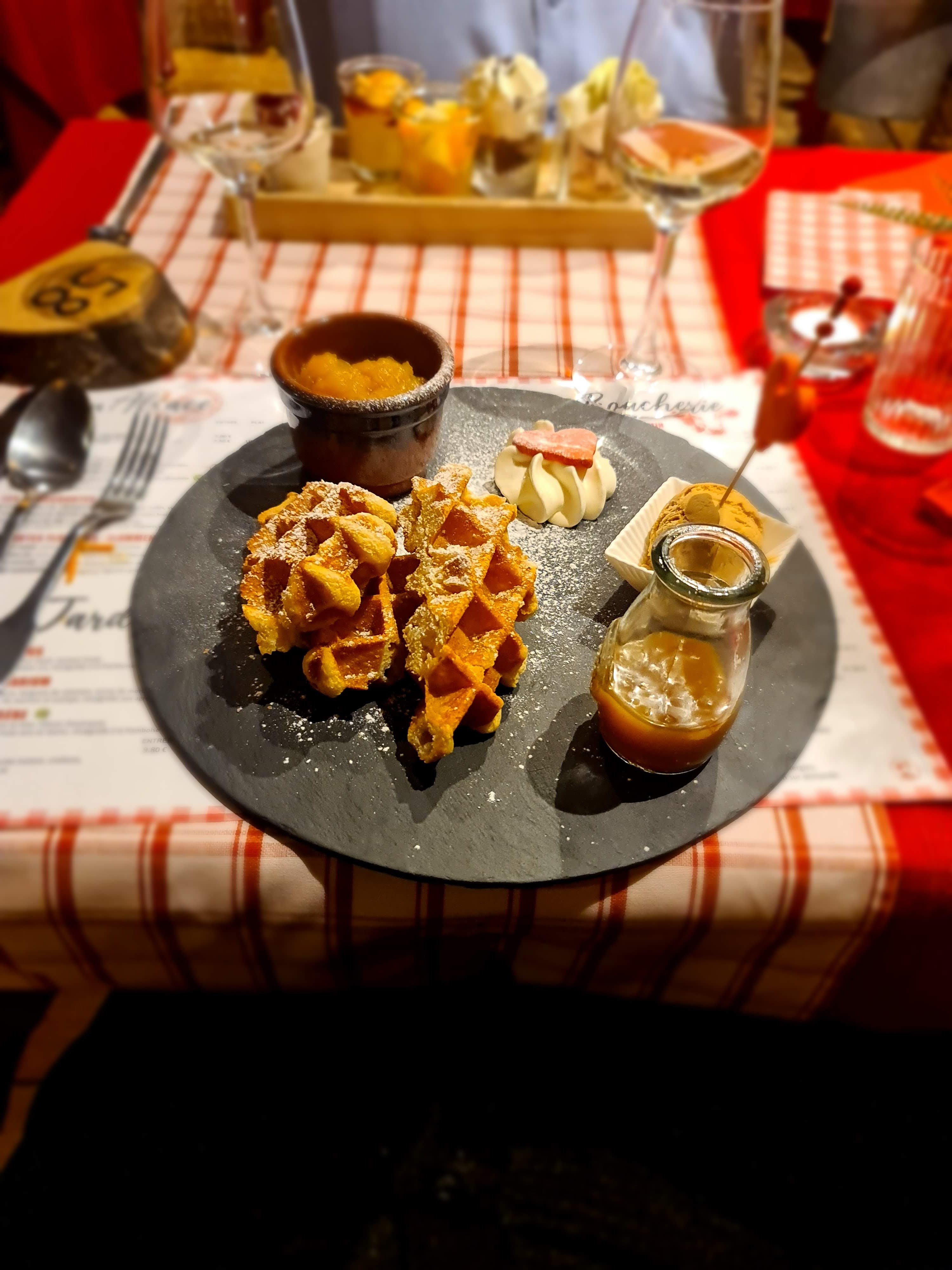 La décoration des lieux est impressionnante et chaleureuse. Les plats sont fins et les quantités énormes surtout les desserts ( voir photos). N'hésitez pas à prendre un café gourmand si vous avez encore faim. Le personnel est souriant et efficace. Conclusion: venez sans hésiter