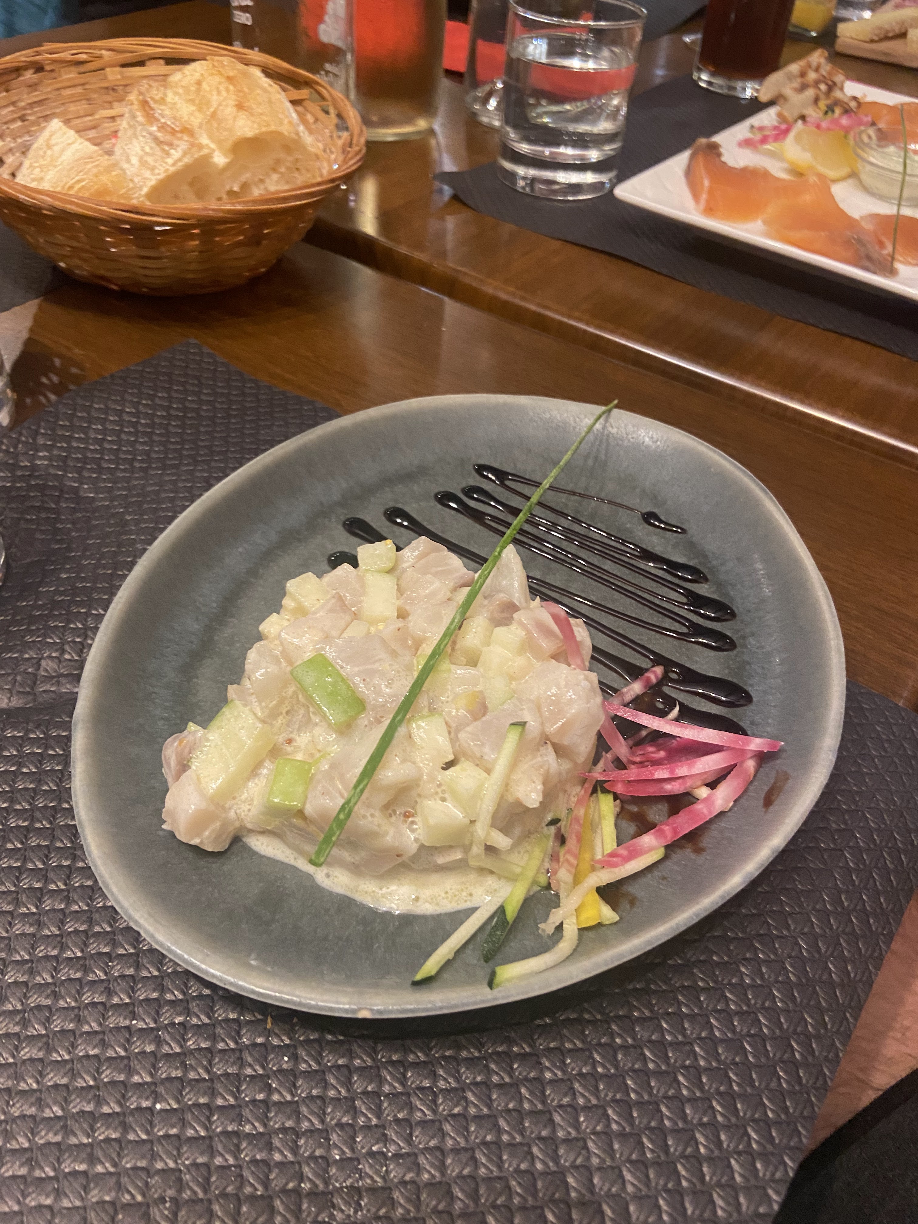 Nous avons mangé du tartare de thon délicieux et un vin de fraise en apéro ! La serveuse est charmante. Très sympa !