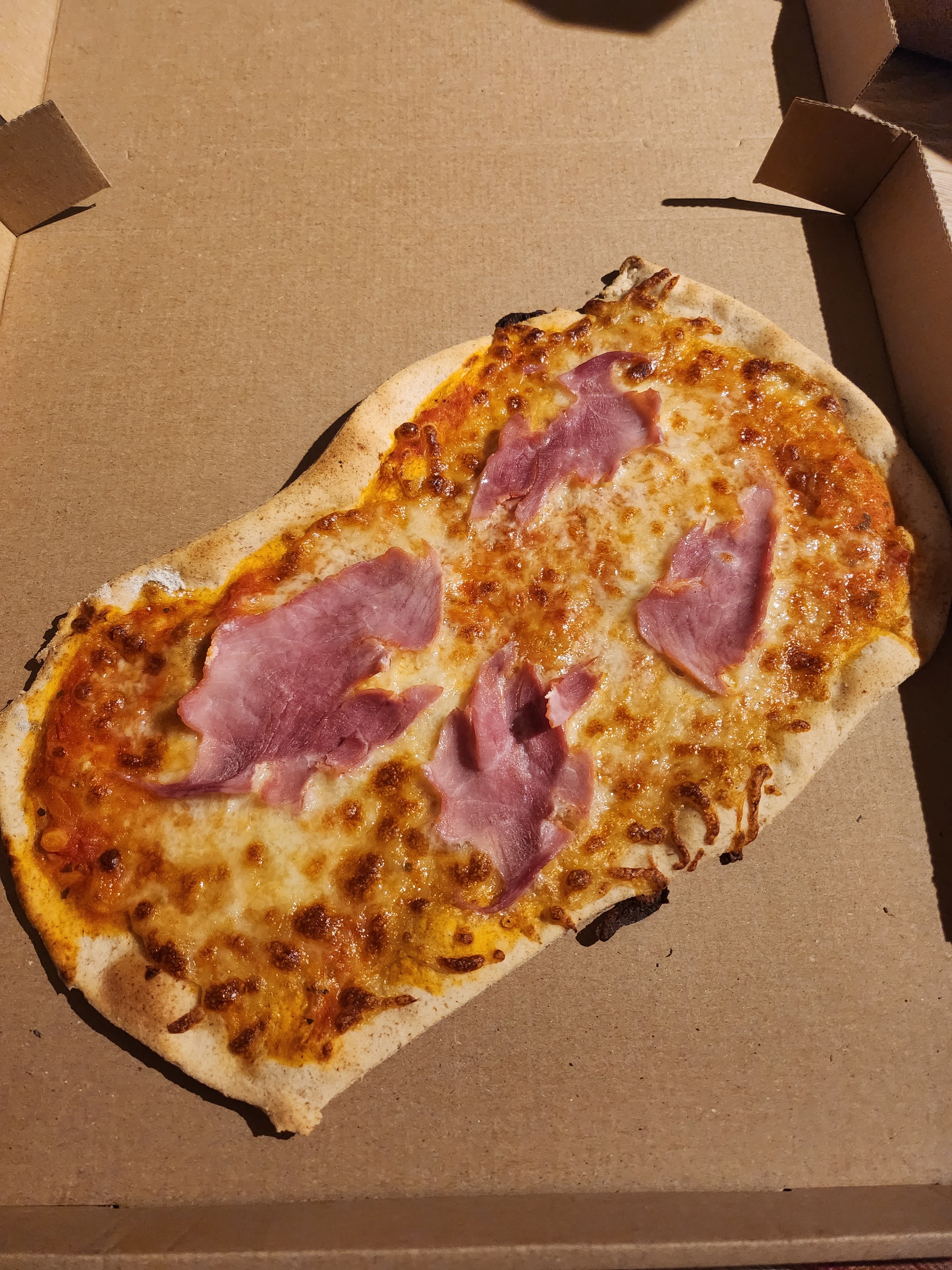 Mon avis ne concerne que la vente à emporter. Les premiers mots qui me viennent à l'esprit ne seraient pas adaptés à un jeune public ! Lorsque j'ai vu les pizzas servit en salle en attendant ma commande mes yeux (ainsi que mon ventre) se sont emballés. Quelle déception arrivé à la maison !!! Pourquoi une telle différence ?!!! Les clients de passage ne méritent-t-ils pas le même respect ?!!! Je ne vous montre que la pizza de ma fille, 9 euros pour ça ?!!! C'est tout simplement honteux !!! Nous ne reviendrons pas.