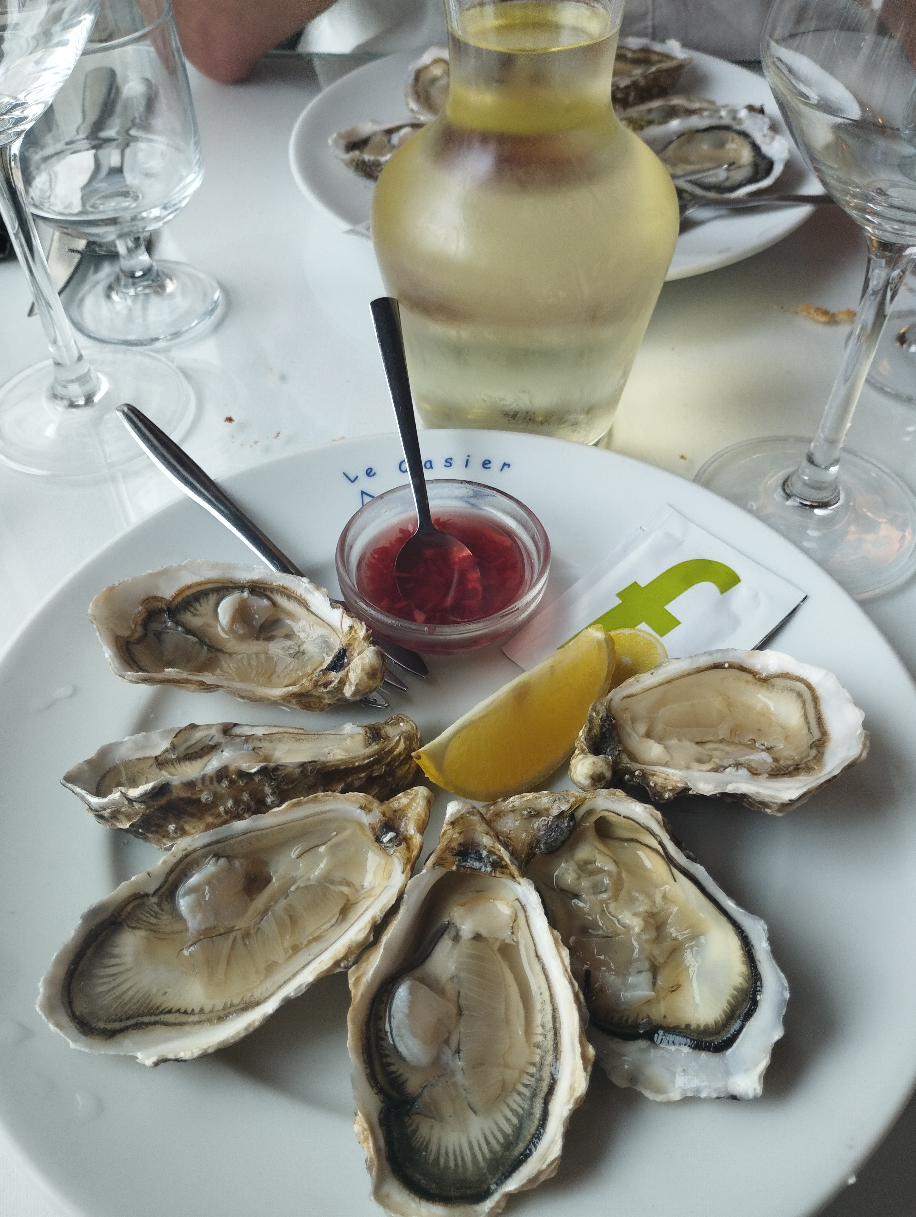 Très bon accueil. Service impeccable. On nous laisse le temps d'apprécier les mets. Les plats arrivent en temps et en heure. En entrée, des huitres. Un pur régal ! Une sole meunière avec des pommes de terre grenailles.. Très bonne cuisson, très goûteux. Pour ma fille, tarama maison, puis une poêlée de seiches grillées.. Quel goût ! Très bons conseils surtout au niveau du vin. On reviendra sans hésiter.