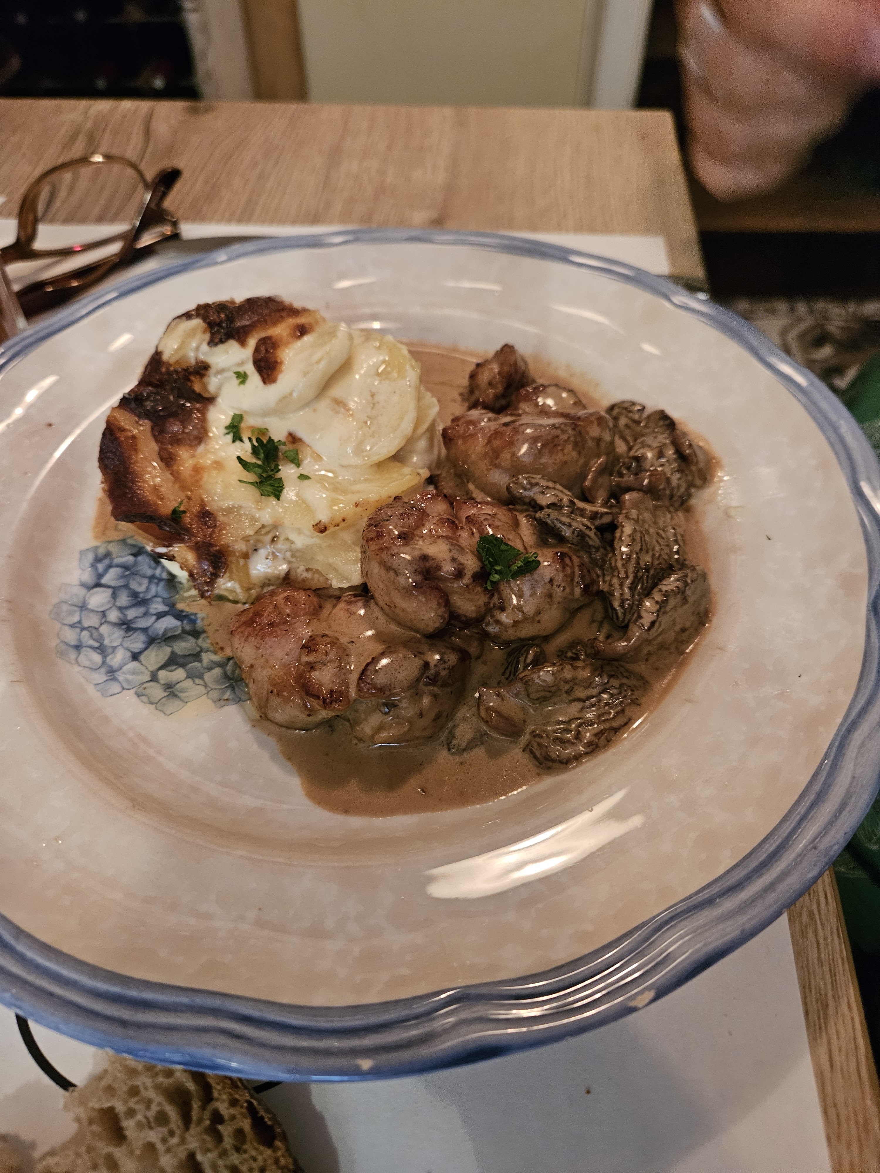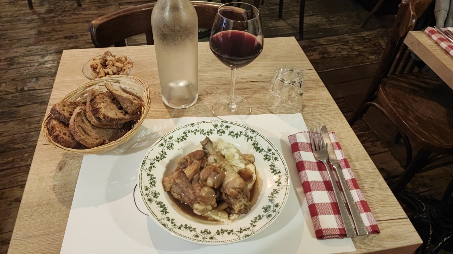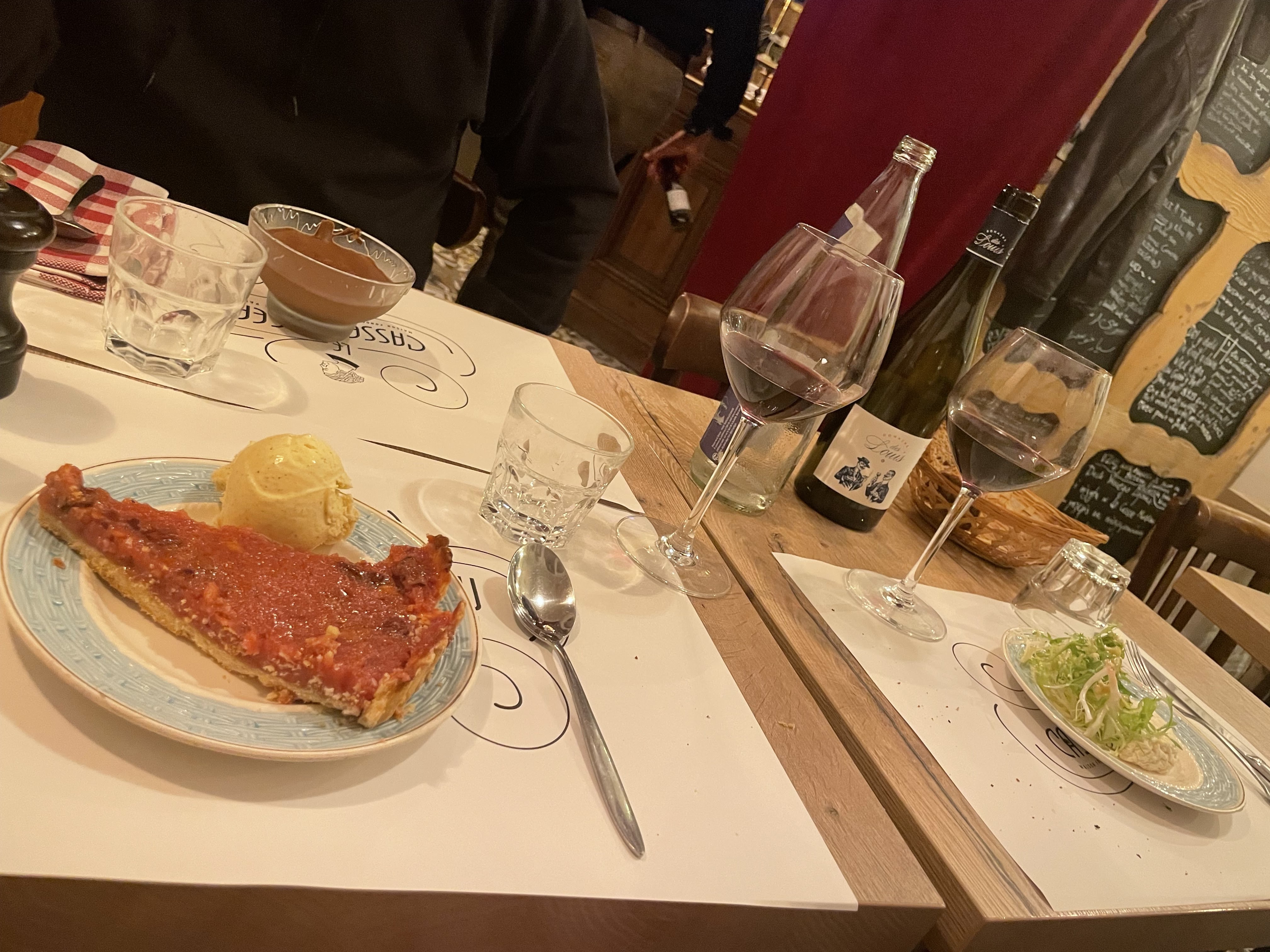 J'ai découvert les oeufs meurette, très belle découverte ! Le gratin dauphinois était bon et la mousse au chocolat était très bonne