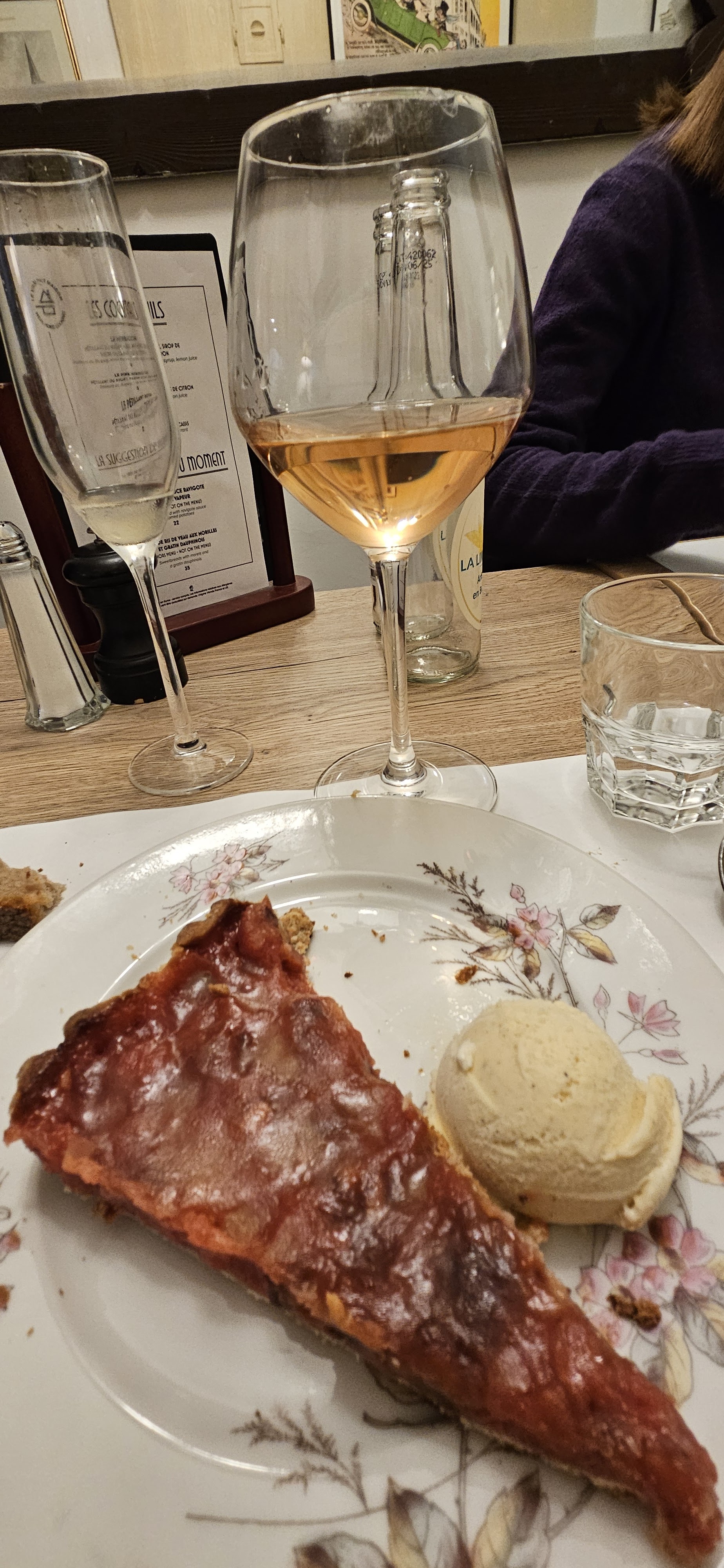 Accueil très sympathique et personnalisé. Eric met l'ambiance ! Repas typique d'un bouchon lyonnais et vraiment très apprécié (oeuf meurette, quenelle de brochet, tarte à la praline)... Très belle découverte.... Petit clin d'oeil d'une puriste : la vraie tarte tatin de Lamotte Beuvron c'est sans la boule de glace 😉