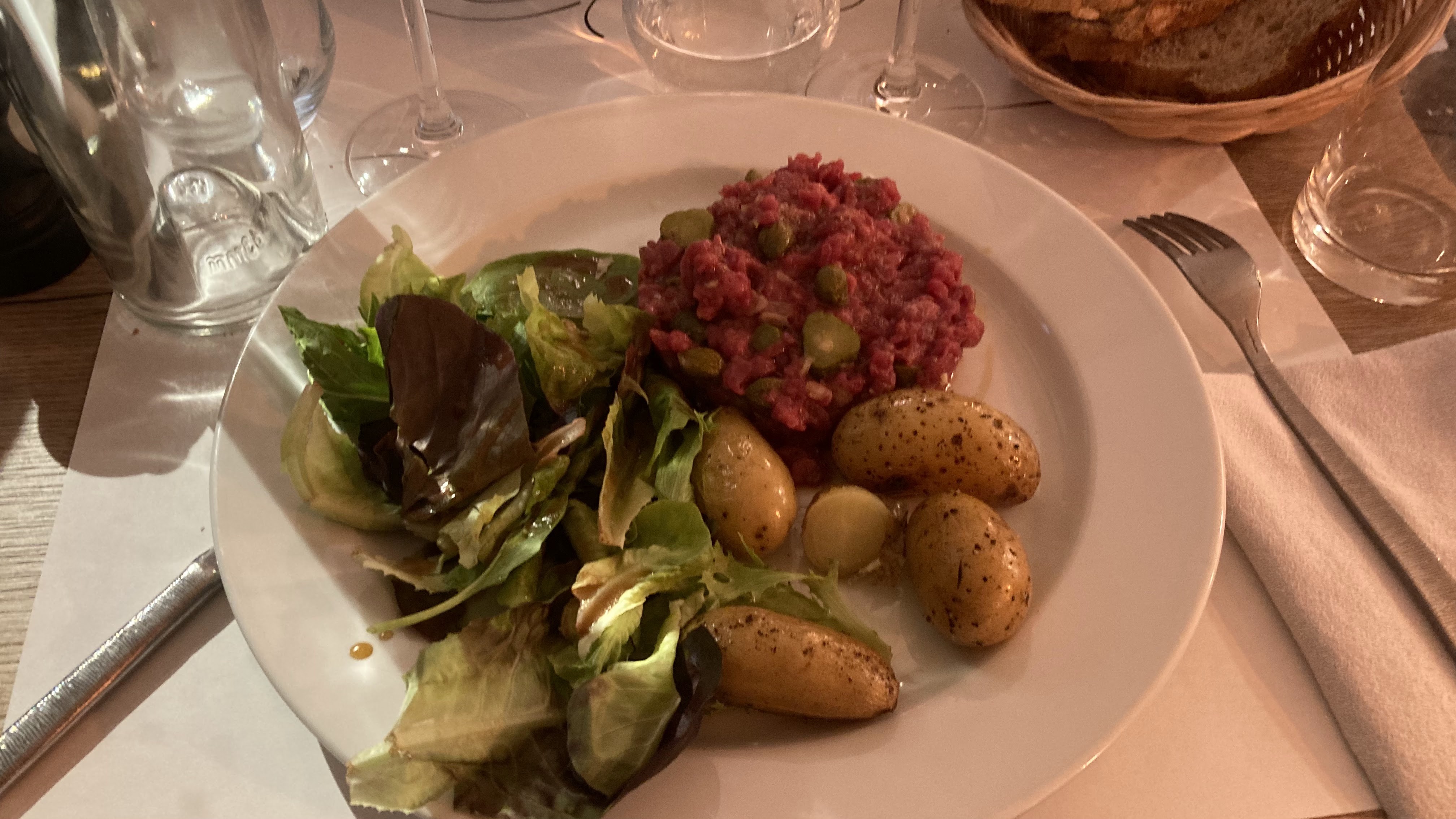 Très bon ! Tartare de saumon délicieux et surprenant par son mélange de saveurs. La cuisse de canard est savoureuse. Service impeccable et efficace malgré l'affluence importante de clients ce jour là (samedi). Nous reviendrons avec plaisir !