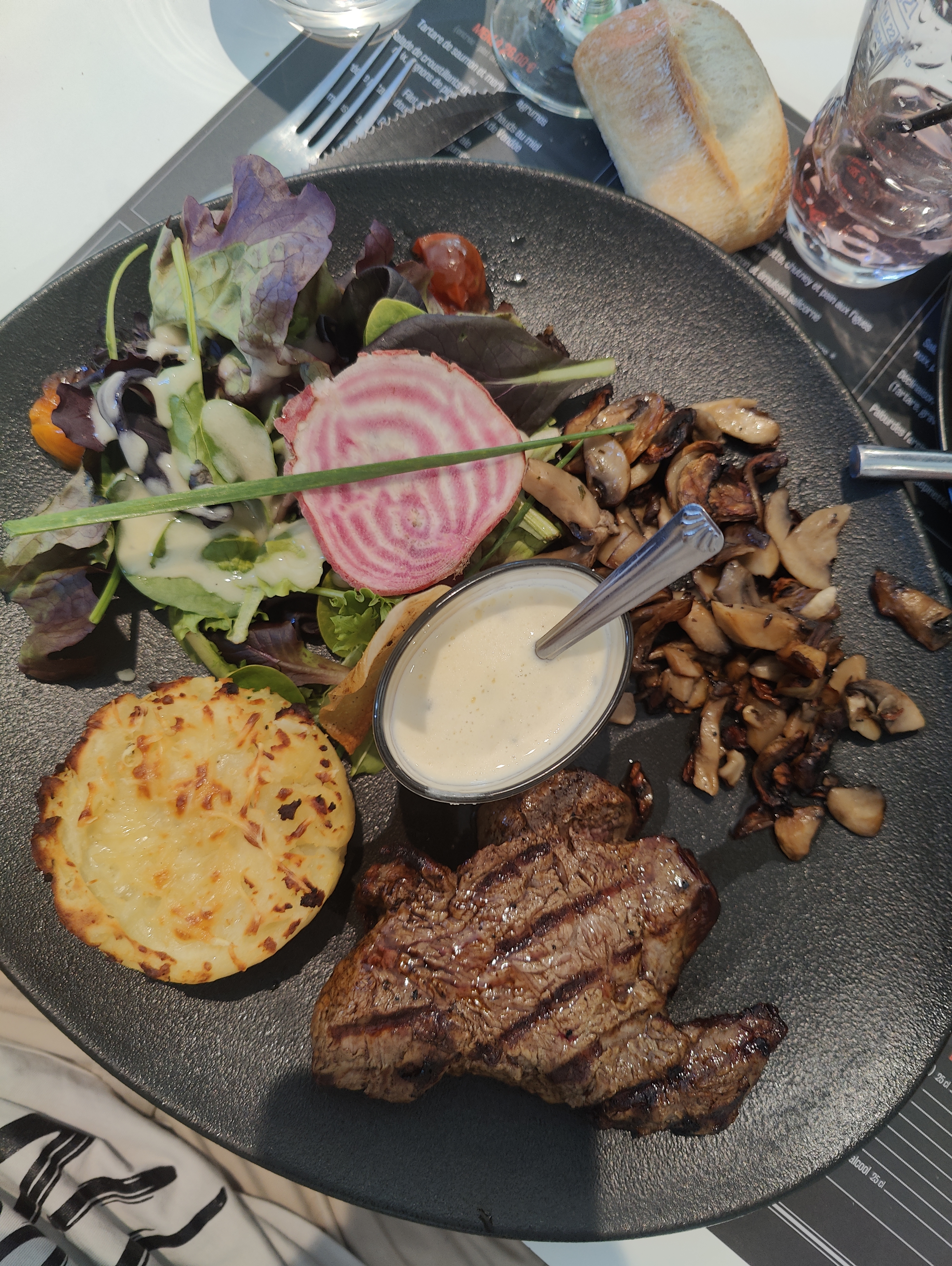 Nous avons pris l’onglet de bœuf et la dorade royale : ces deux plats étaient excellents ! Les accompagnements étaient également très bons et le service était au top. Nous recommandons vivement cette adresse qui est en plus très bien située pour pouvoir faire une balade digestive par la suite.