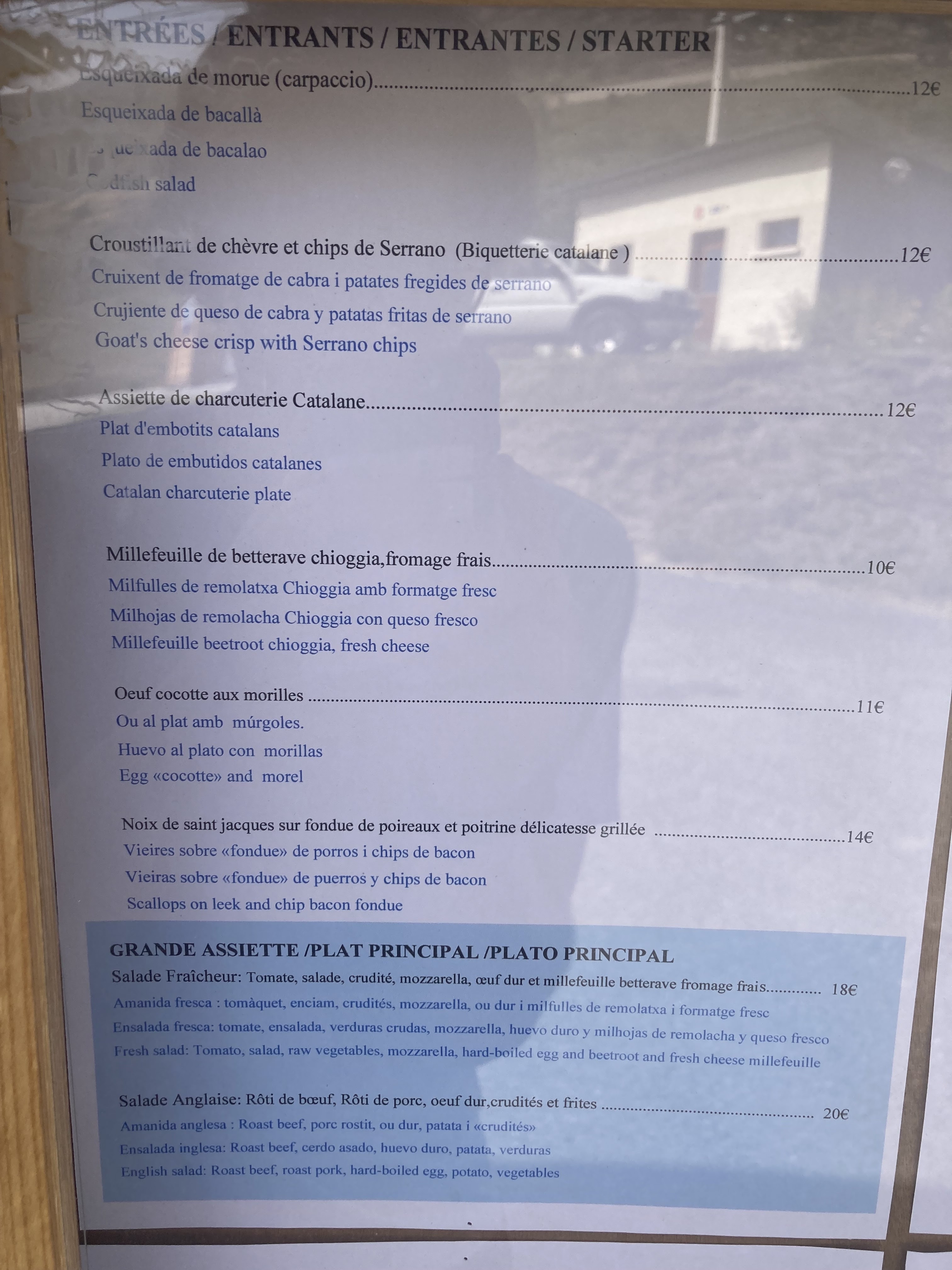 Le plus notable est la gentillesse des deux personnes que nous avons rencontrées devant le restaurant et qui font un effort pour parler espagnol. Le lieu, sans prétention, propose une carte simple mais bien résolue, dans laquelle les crêpes se démarquent. Être au pied des pistes et sa terrasse avec vue justifie un repas.