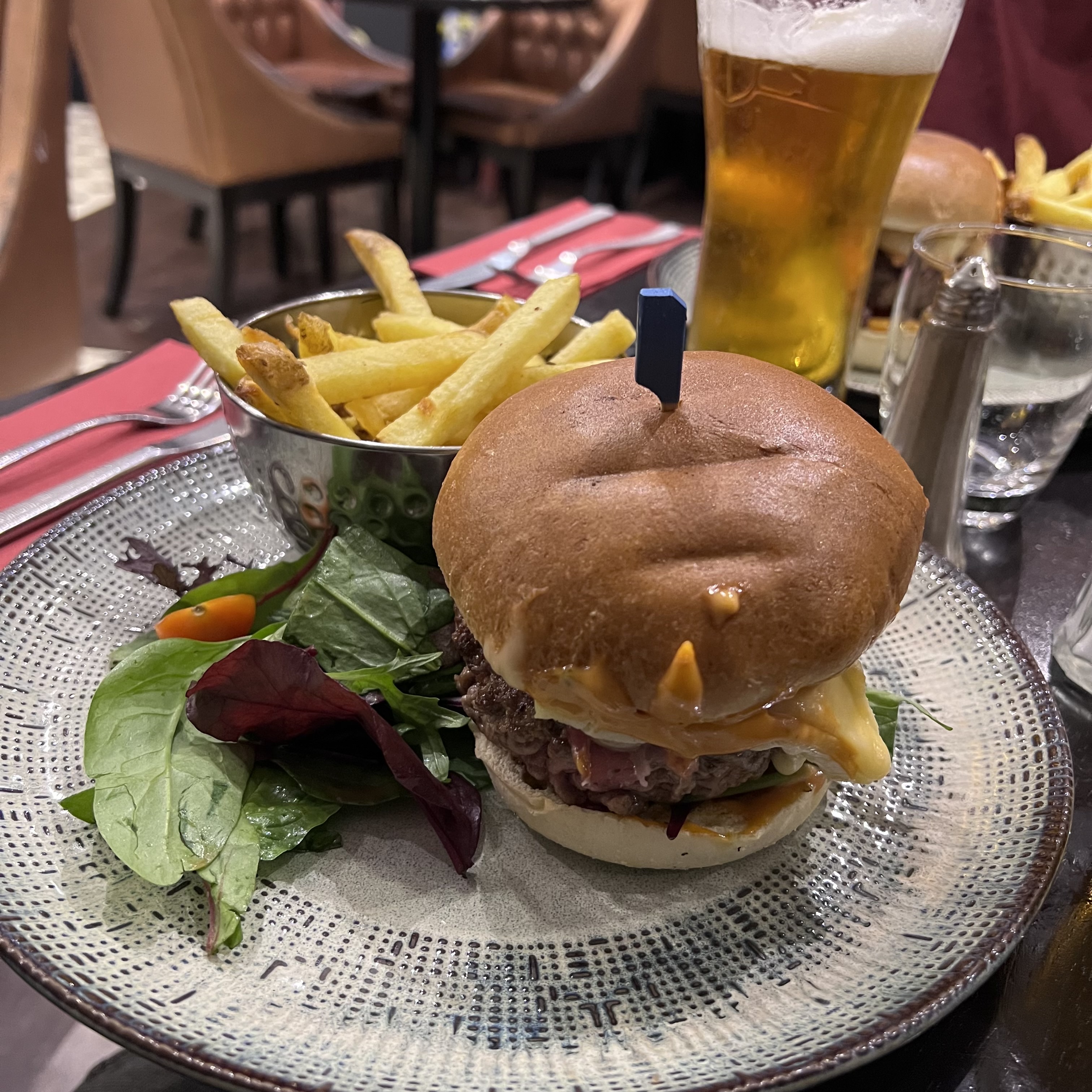 Très déçus. Le niveau, a tout point de vue, à beaucoup baissé. Serveurs sympathiques mais le service est à revoir, nous avions demandé de prendre l’apéritif avant de manger, nous avons reçus les plats avant les apéritifs … Nous avons également été très déçus par la qualité des plats, burger sans intérêt et frites molles et très grasses.. cela n’était pas comme ça il y a quelques moins encore. Point positif à reconnaître, le patron a fait un beau geste commercial sur l’addition compte tenu de notre déception.