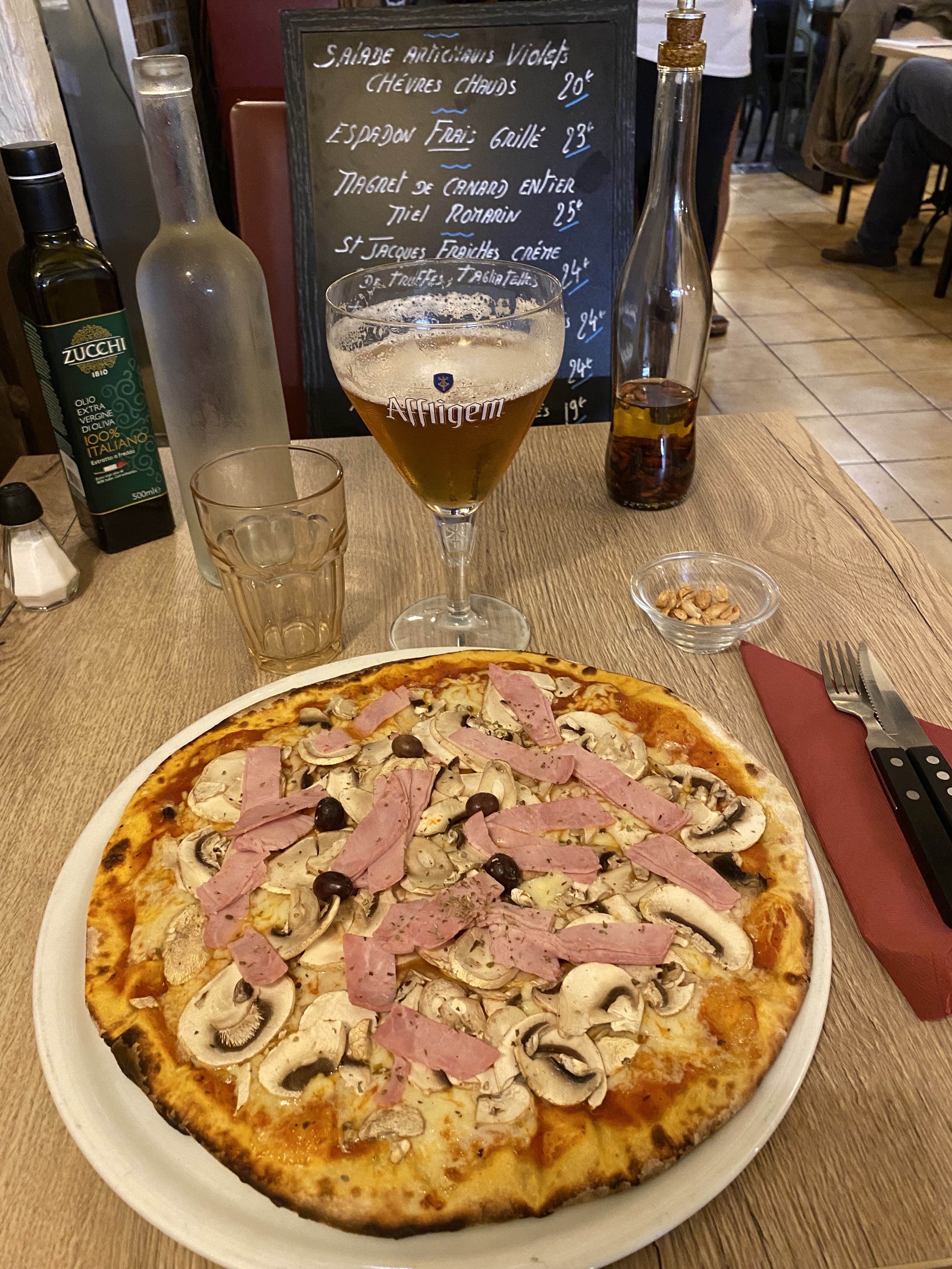 PIZZA EXCEPTIONNELLE La pâte est ultra fine et croustillante , unique en sensation. Parfaitement garnie avec des produits de qualité Un pur regal ( et nous sommes amateurs de pizza donc très exigeants ) Dommage que nous ne soyons que de passage !