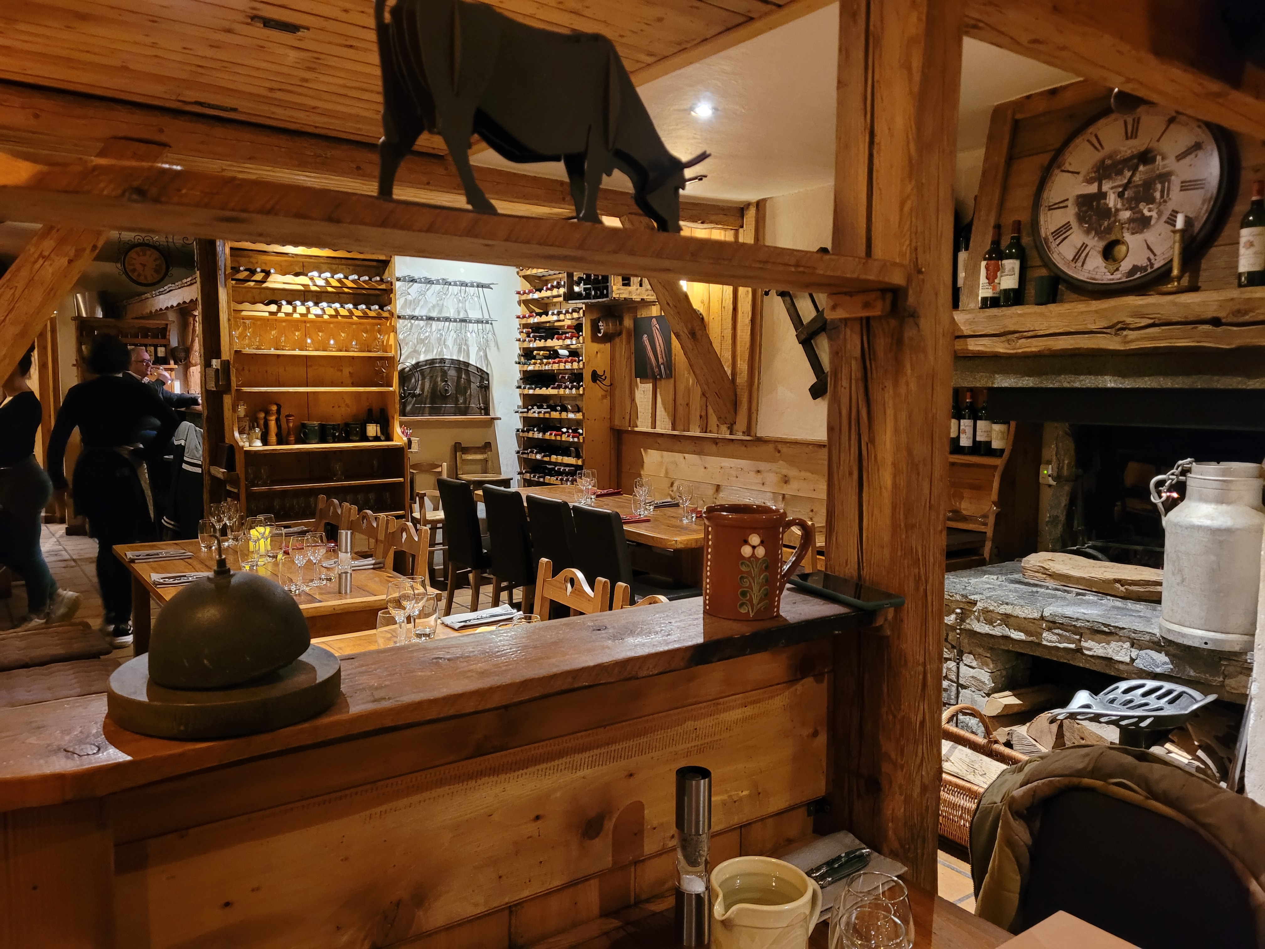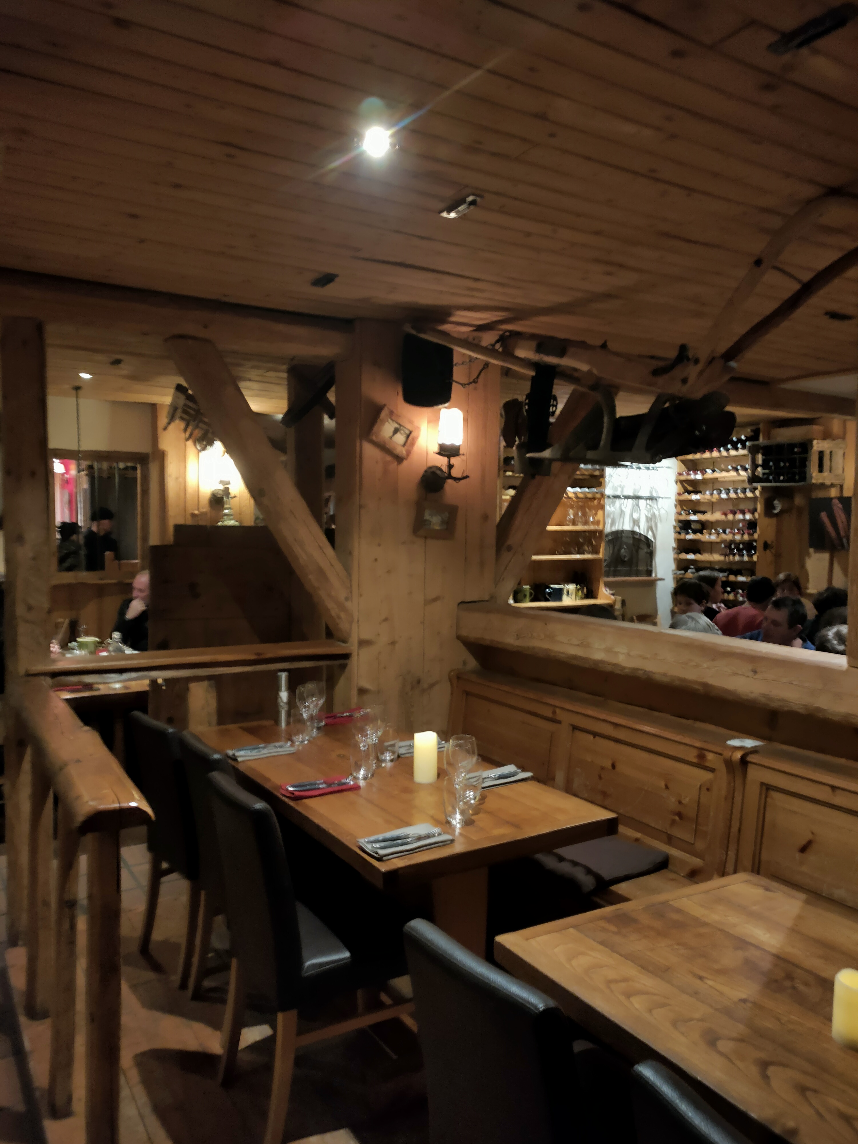 Lieu typique dans un décor montagne. Repas régionaux. Deux services complets en février, donc beaucoup de monde et très bruyant. A fuir si l'on aime le calme et l'intimité. Rien à dire par contre sur le service, rapide, professionnel et agréable, ni sur la qualité des plats, bons et copieux