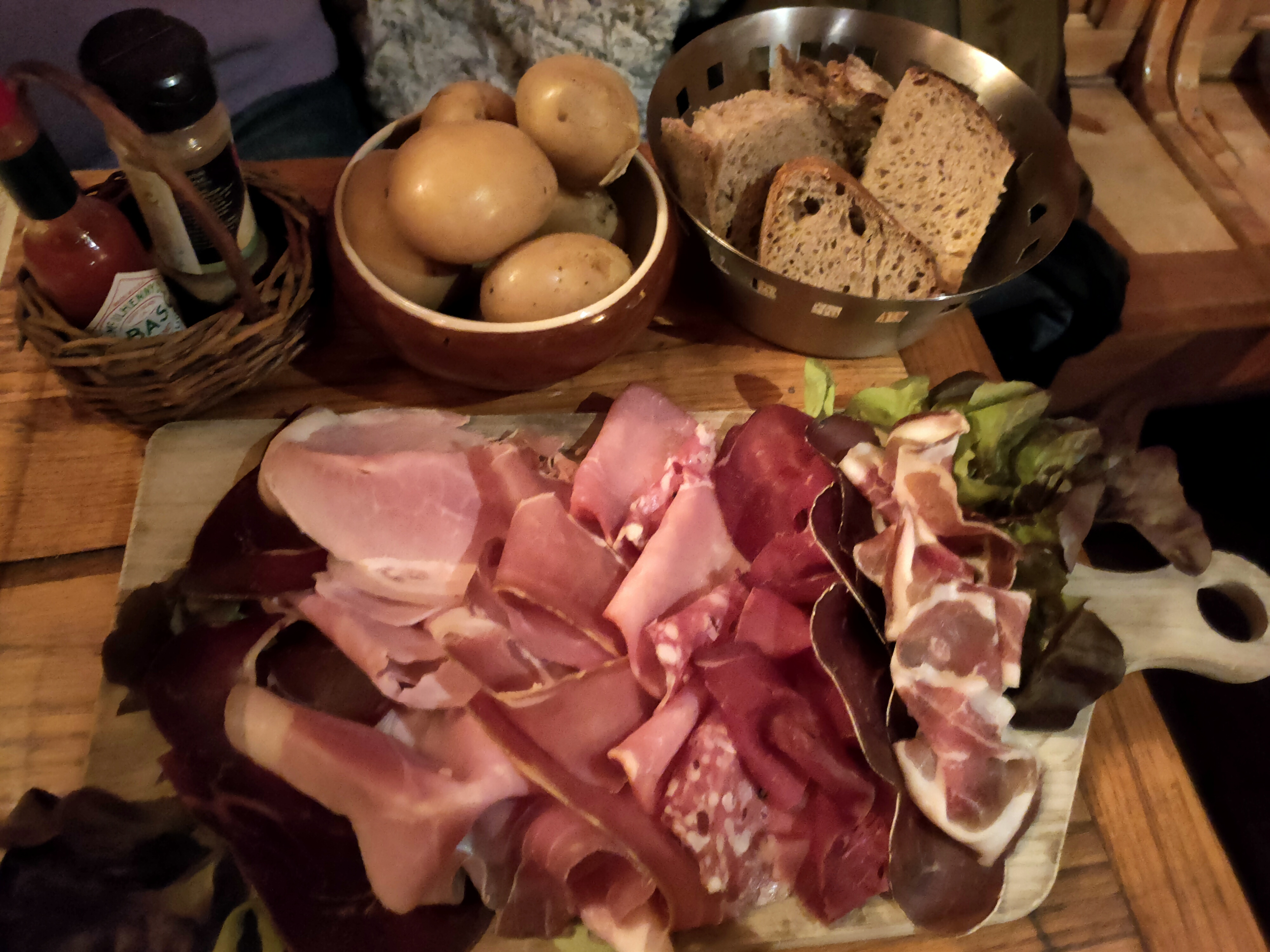 Le caveau....1550.... comment dire .... ambiance et cadre typique de la Savoie....de la brochette suspendu à la raclette en passant par la fondue....tout est réuni pour passer une excellente soirée.... serveuse au top....le boss quand il peut il fait si il est full ne lui en voulait pas et penser à réserver.... côté carte bleue yen a pour toutes les bourses.... après mon péché Mignon filet de boeuf façon rossigni...et la brochette.... après il y en a pour tous les goûts même nos amis végétarien il y a un choix pour vous et même le kids.... Pour le dessert mon préféré un classique la dame blanche Carte des vins pour toutes les bourses....donc franchement allez y.... J'ai pas mis 5 en cuisine car la perfection n'existe pas.... Mais vous êtes au top alors au caveau c'est bon c'est beau c'est chaud.......