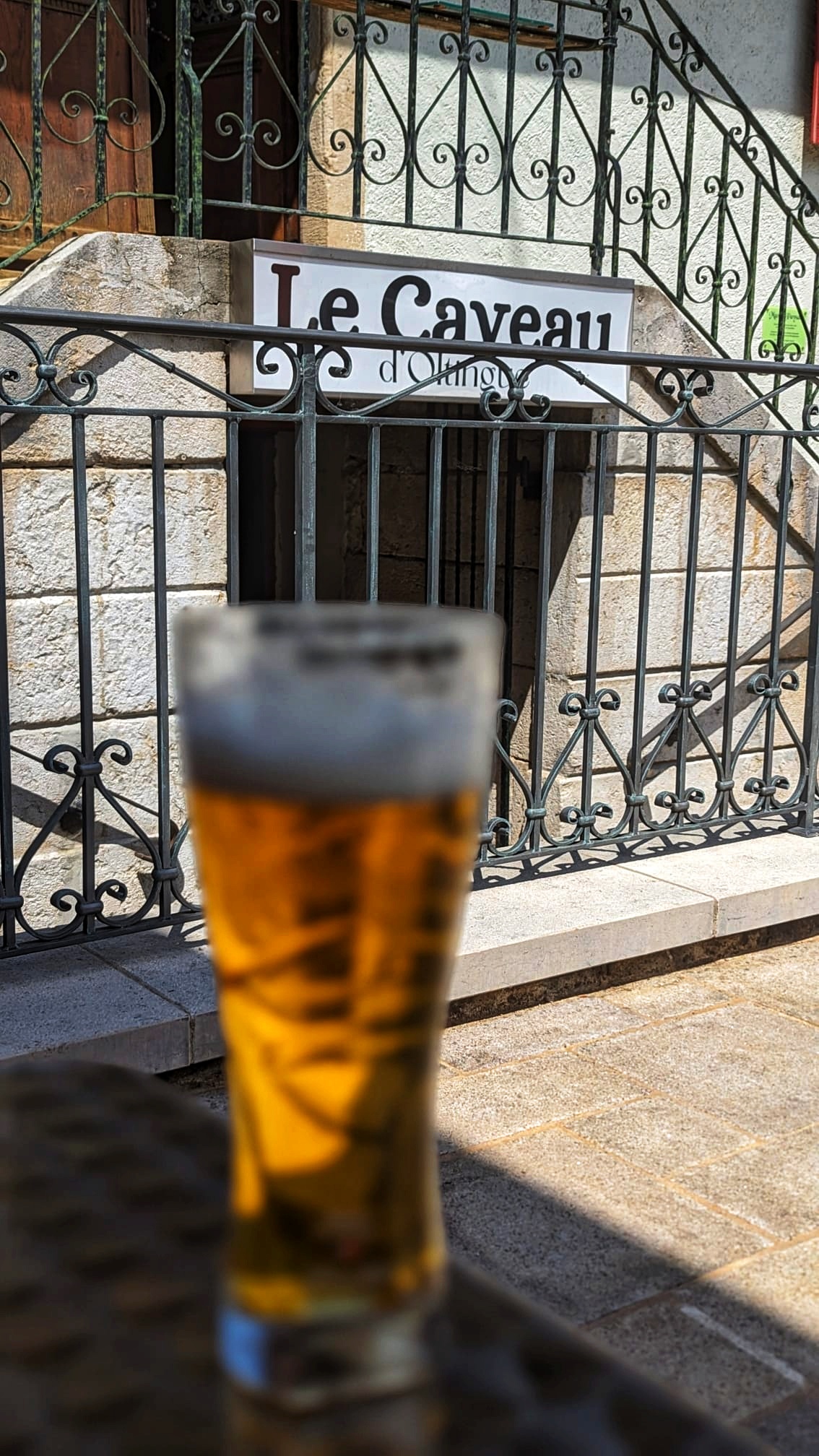 Coup de coeur pour cet emplacement situé sur une place en plein coeur du village, nous avons pu boire et nous restaurer au Caveau(situé en dessous du musée paysan).Le caveau est constitué de deux espaces, un espace extérieur,très agréable par beau temps avec un parasol et des places à l'ombre et d'une salle de restauration à l'intérieur dans une cave aménagée en pierres apparentes. Pas de carte mais chaque jour un plat différent en service non stop, on peut consulter les menus de la semaine sur leur page Facebook le caveau d'Oltingue. On y croise des gens de passage des cyclistes des randonneurs ou simplement des gens du coin. Une place de parking est située non loin (a côté de la mairie) pour les gens venant en voiture. Tarifs très intéressants ce jour là une tarte flambée et une salade pour 12,5€. service dynamique et sympathique.