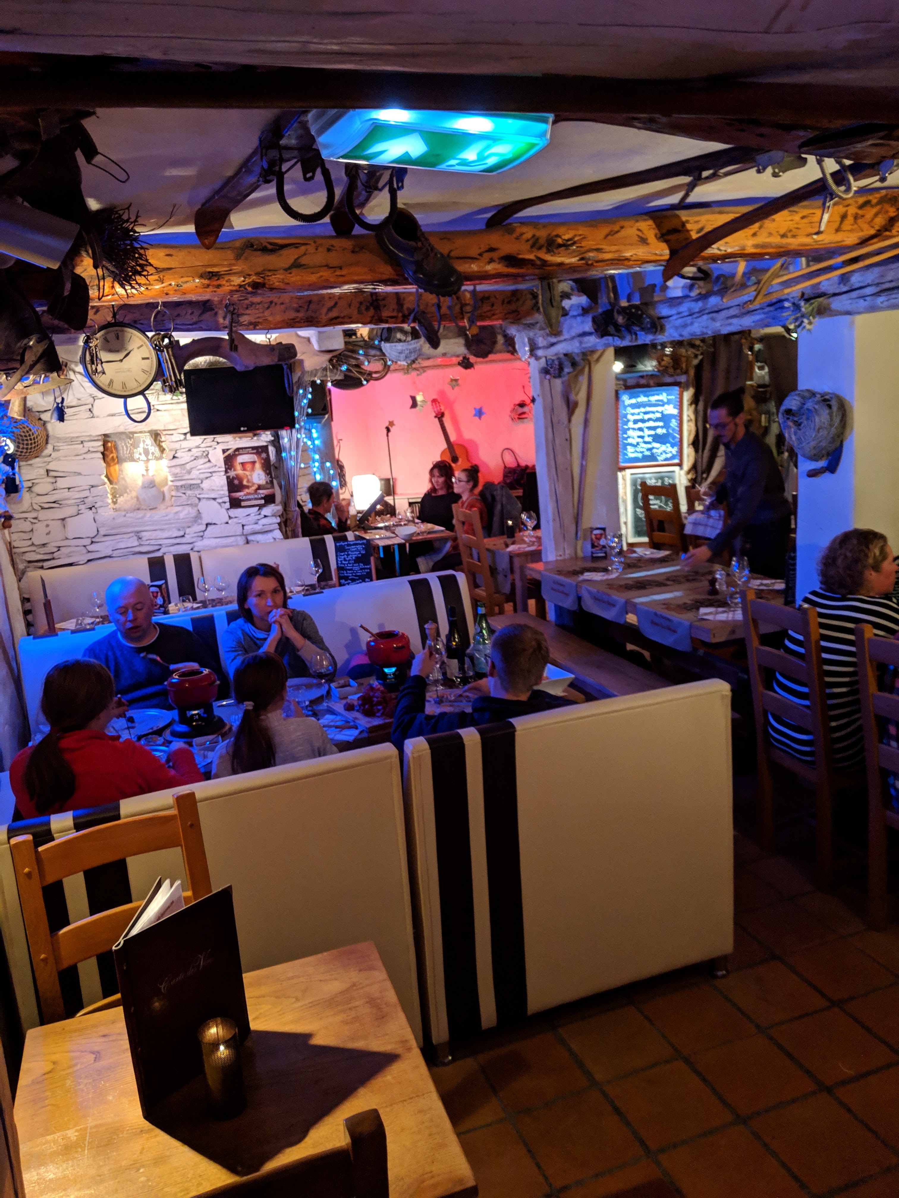 La fondue n’était pas extraordinaire et pour nous, elle était rallongée à l’eau. Une serveuse très sympathique et un concert sympathique également mais un peu fort.