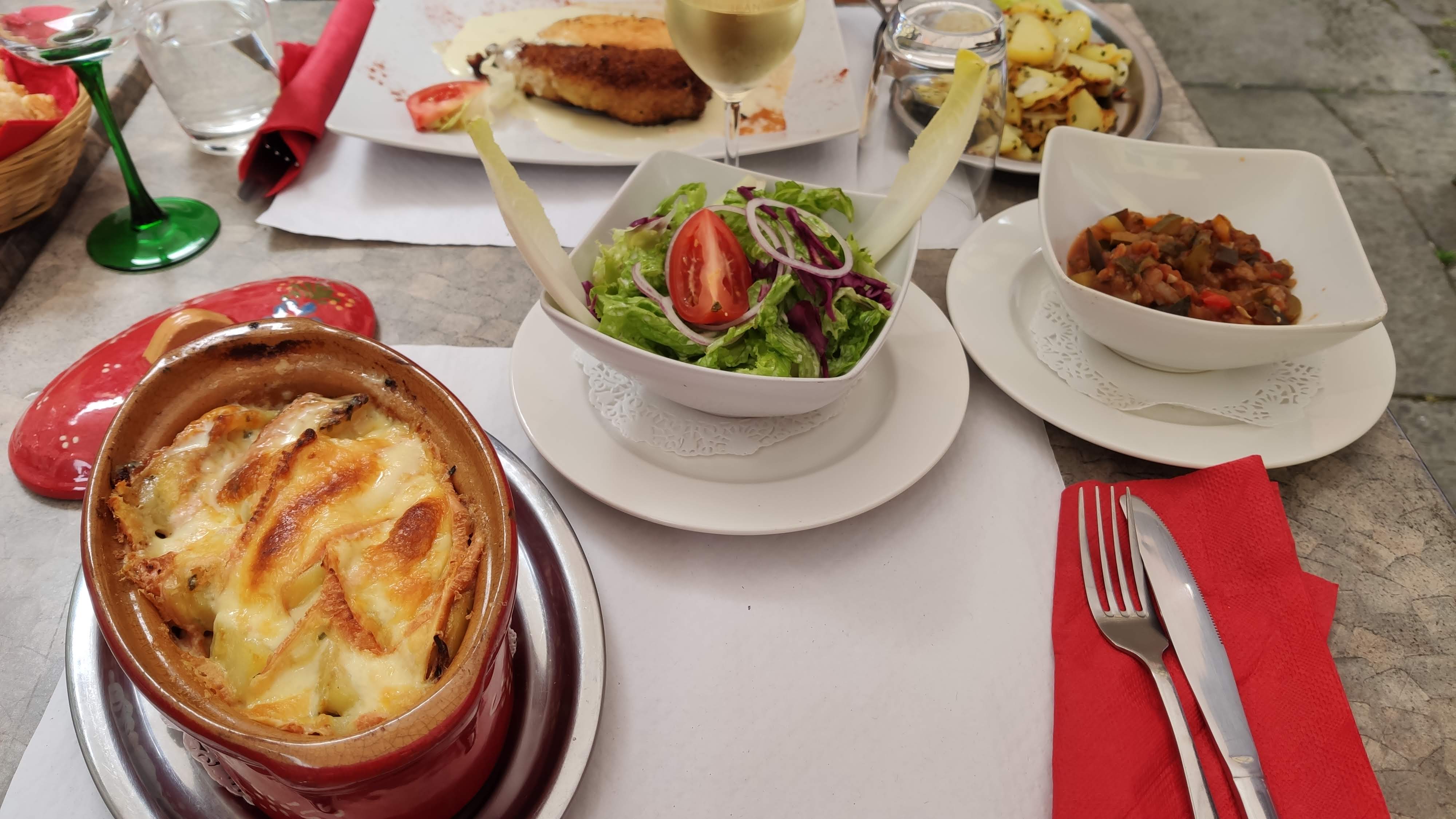 Charmante petite brasserie avec une terrasse à l'ombre, en dehors de la rue principale. On est bien au calme. La carte est à la fois simple et classique.
