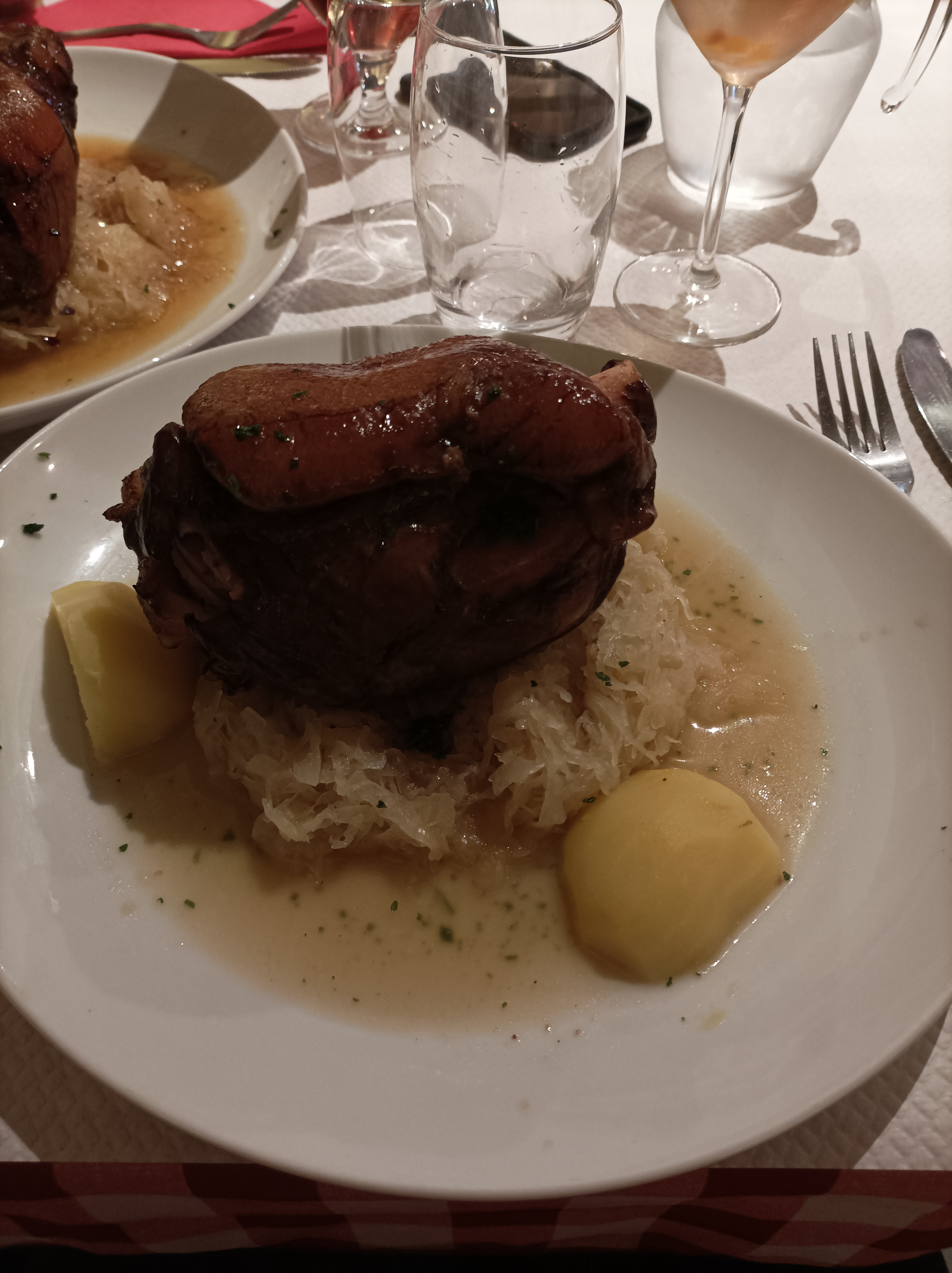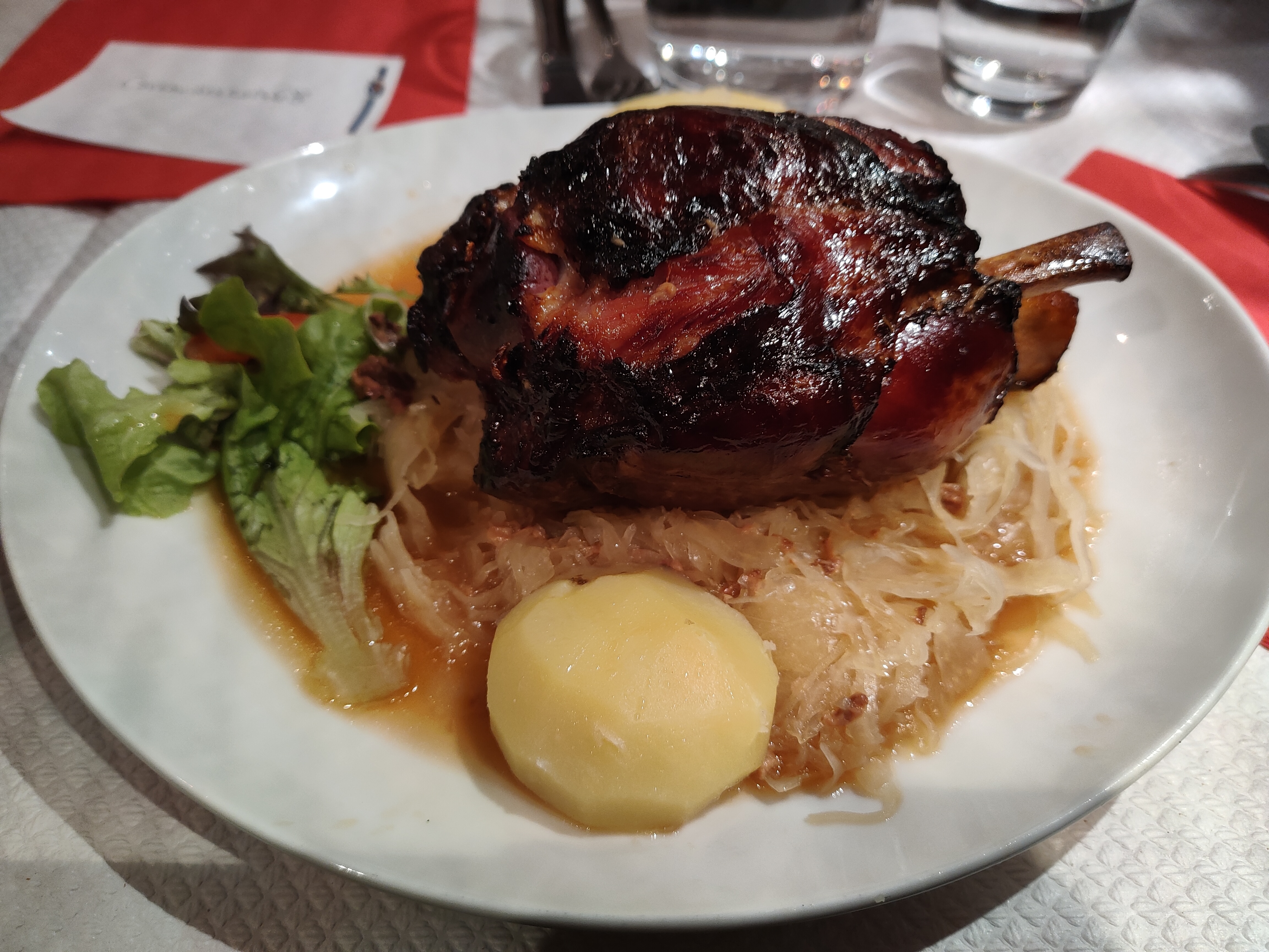Attiré par l'odeur de la choucroute nous y sommes arrêtés. Le jambonneau était très bien, la choucroute garnie était un peu moins bien.
