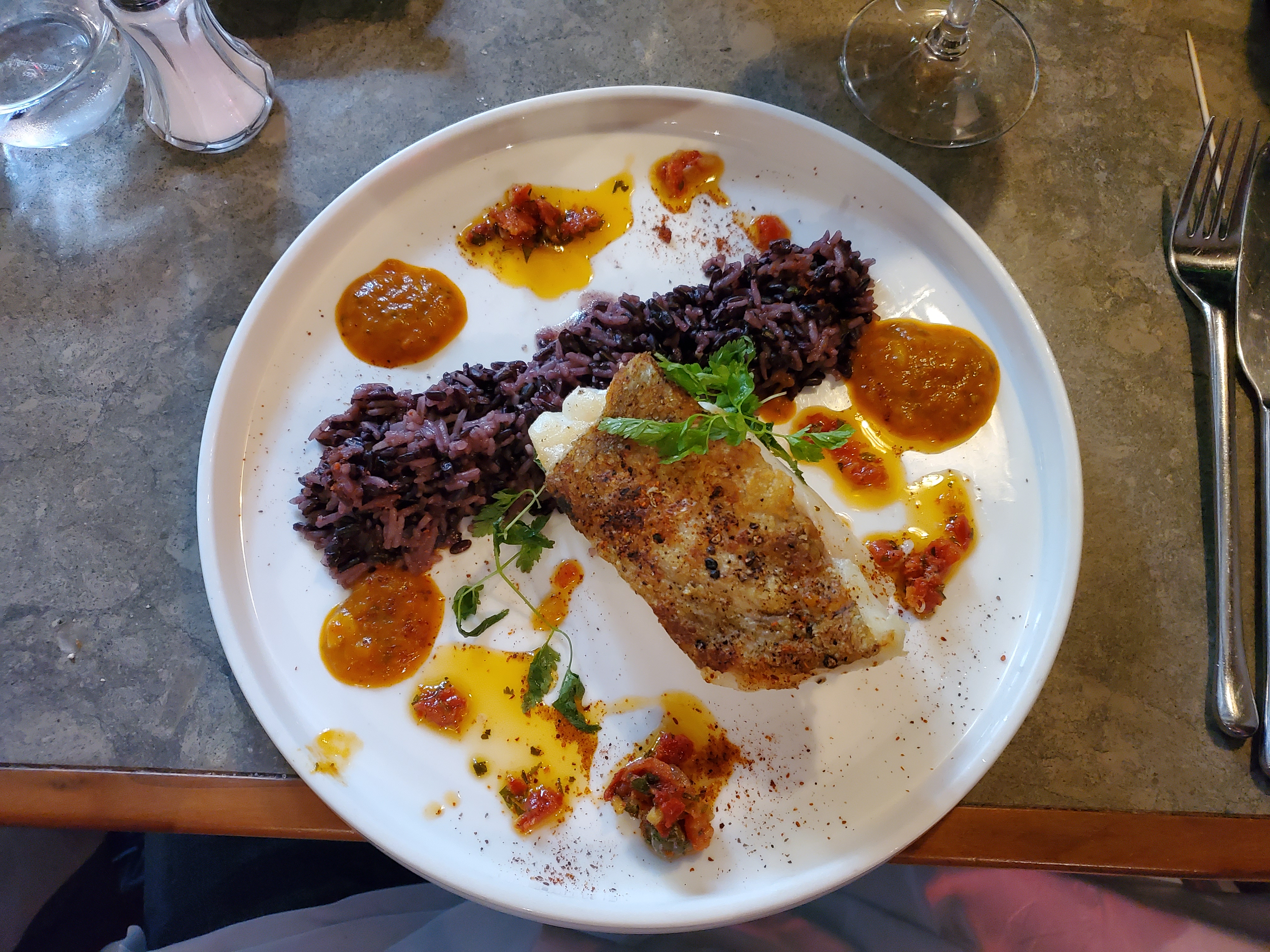 J'ai aimé la nourriture ici, tout était excellent, de l'entrée au dessert. Le service était également très bon : il a commencé à pleuvoir pendant que nous dînions et ils nous ont proposé de nous asseoir à une table à l'intérieur, où il faisait beaucoup plus confortable et chaleureux.