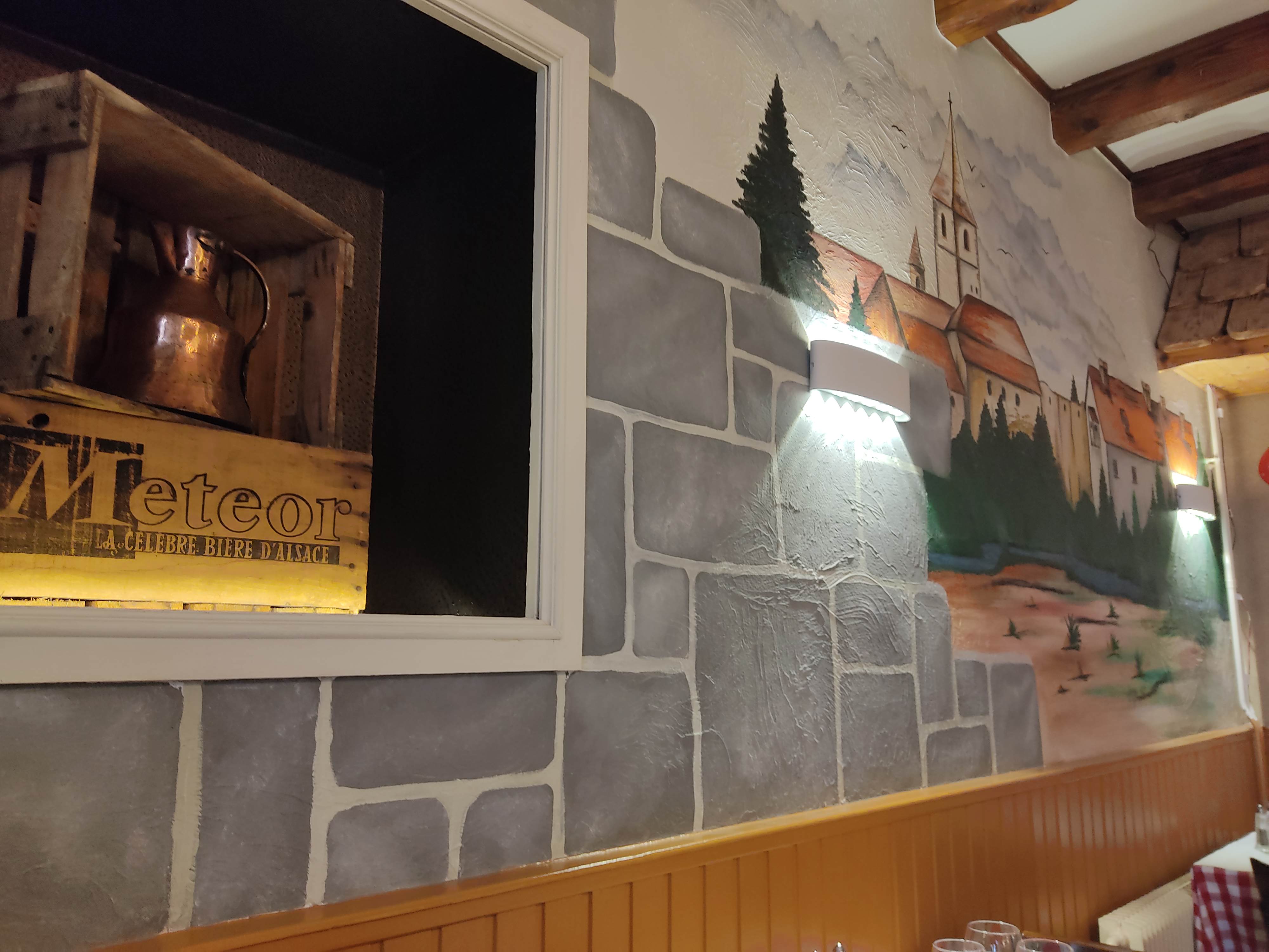 Accueil très chaleureux. Lieu très jolie avec des tres beaux tableaux. voila une vrai tarte flambée comme d'autrefois. Nous avons réservé par le site la fourchette qui semble t il ne soit pas a 50 pourcent moins chère une erreur du site....je vous le recommande