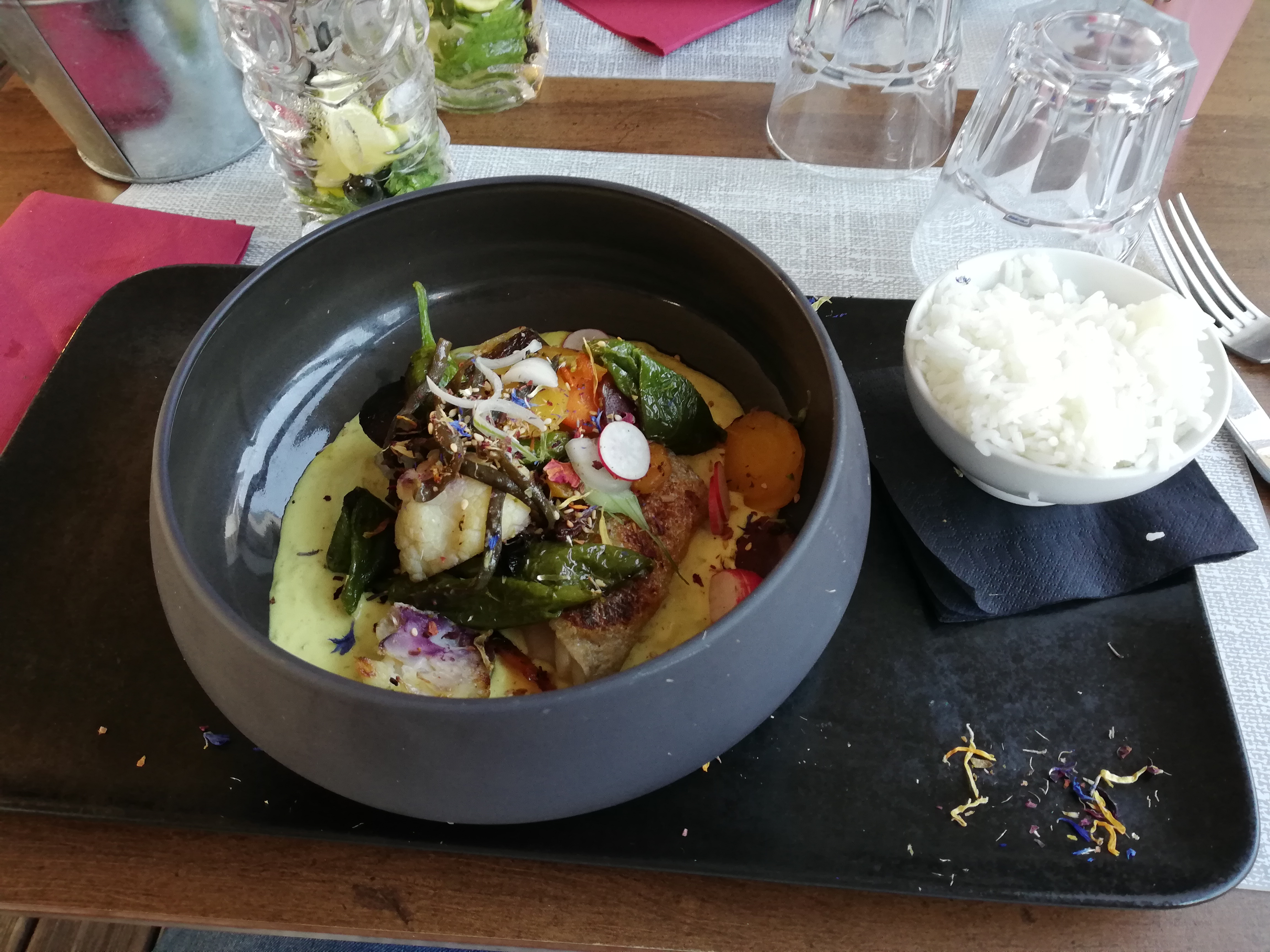 La terrasse est superbe, un vrai moment chill, les plats sont délicieux et le visuel donne l'eau à la bouche. Tous les serveurs/es sont adorables, sans exception, très acceuillant. Je recommande vivement