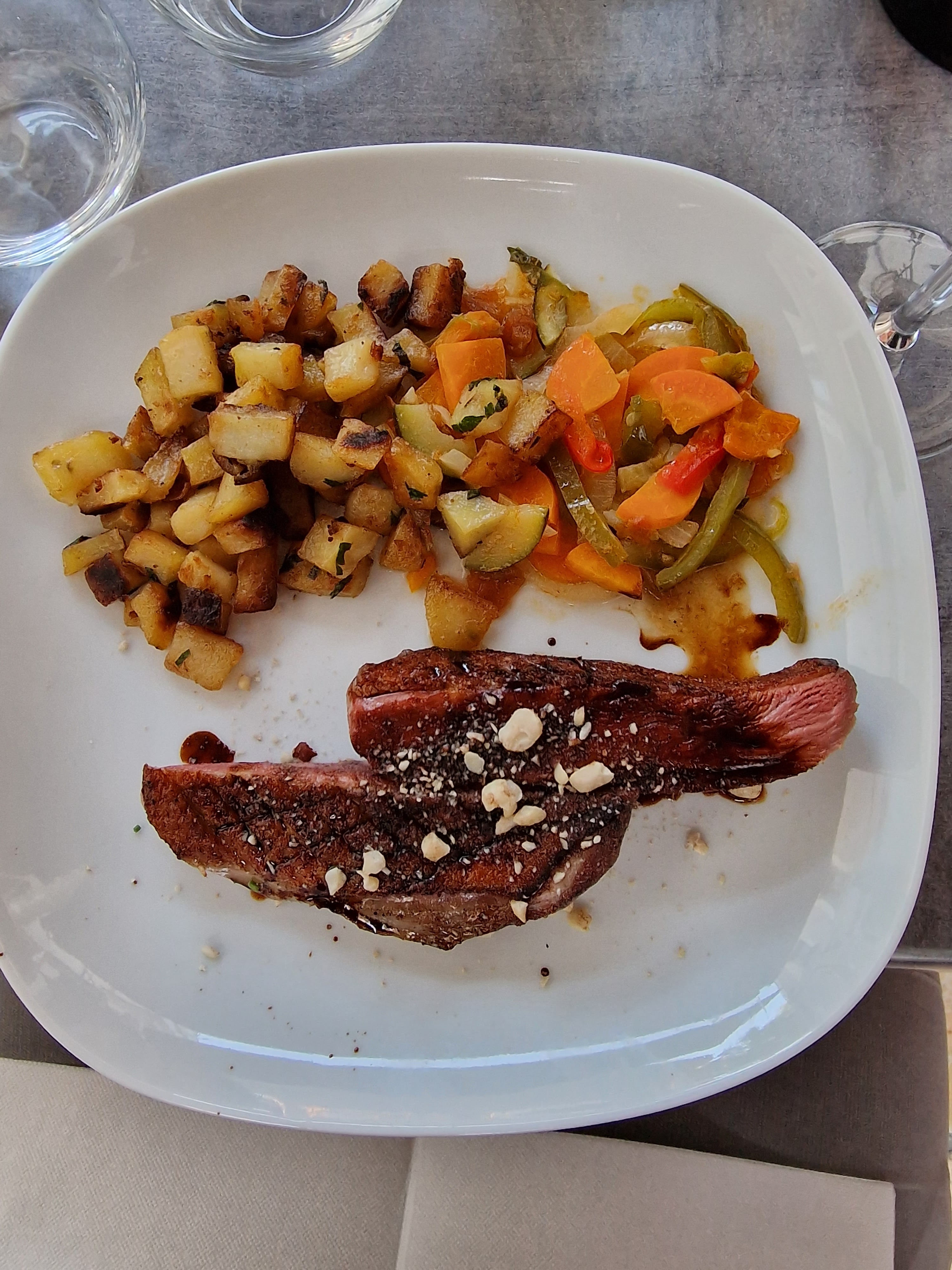 Bons ingrédients, mais pas mal de saveur. Très simplement disposé dans l'assiette, pas de légumes pour la viande.