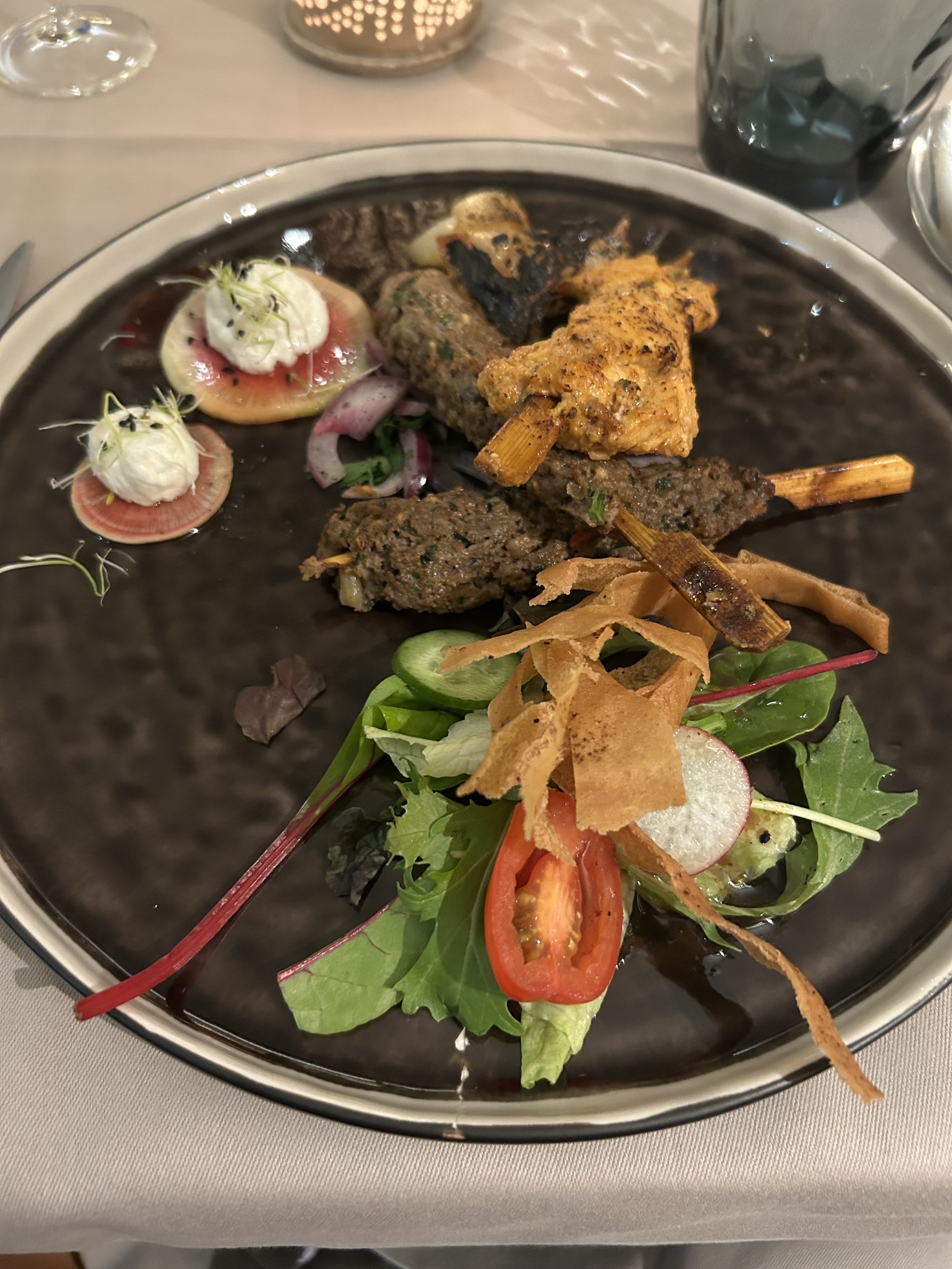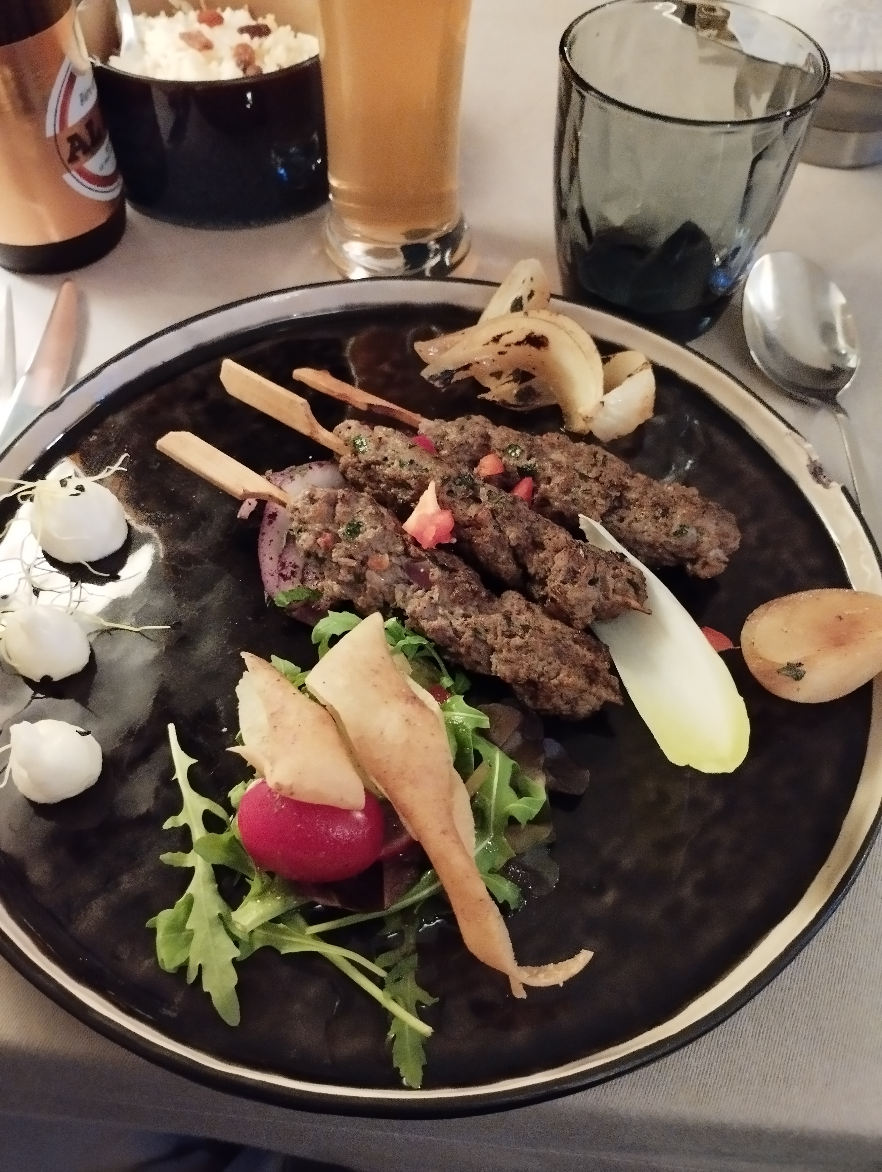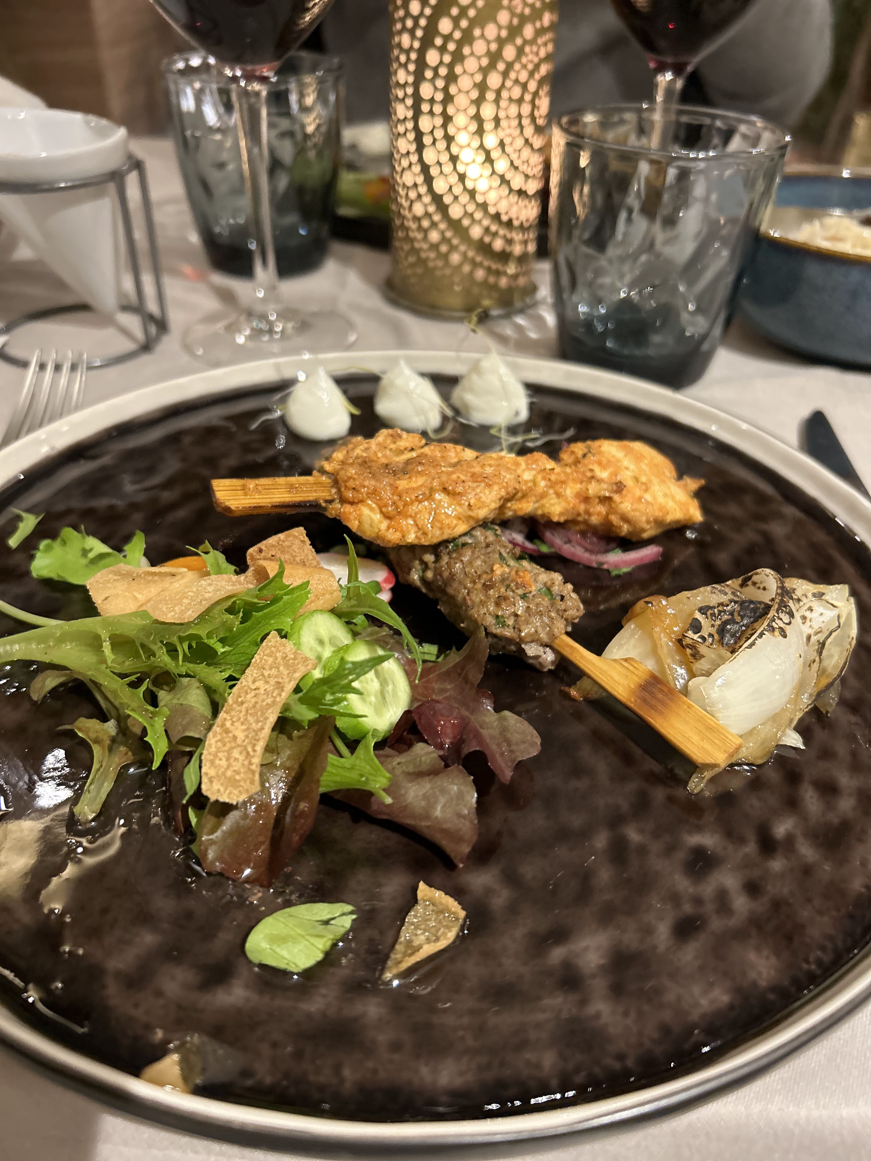 Nous avons choisi le MEZZA EXTRA, qui est une sorte de mix d'entrées froides et chaudes, accompagné d'une composition de grillades : c'était excellent!! La cuisine est parfumée, d'une simplicité étonnante mais délicate. L'accueil a été chaleureux, le cadre est très cozi avec des couleurs dorées et bleutées. On s'y sent bien. Les prix sont tout à fait raisonnables par rapport à la qualité des plats. Je recommande chaudement cette adresse +++