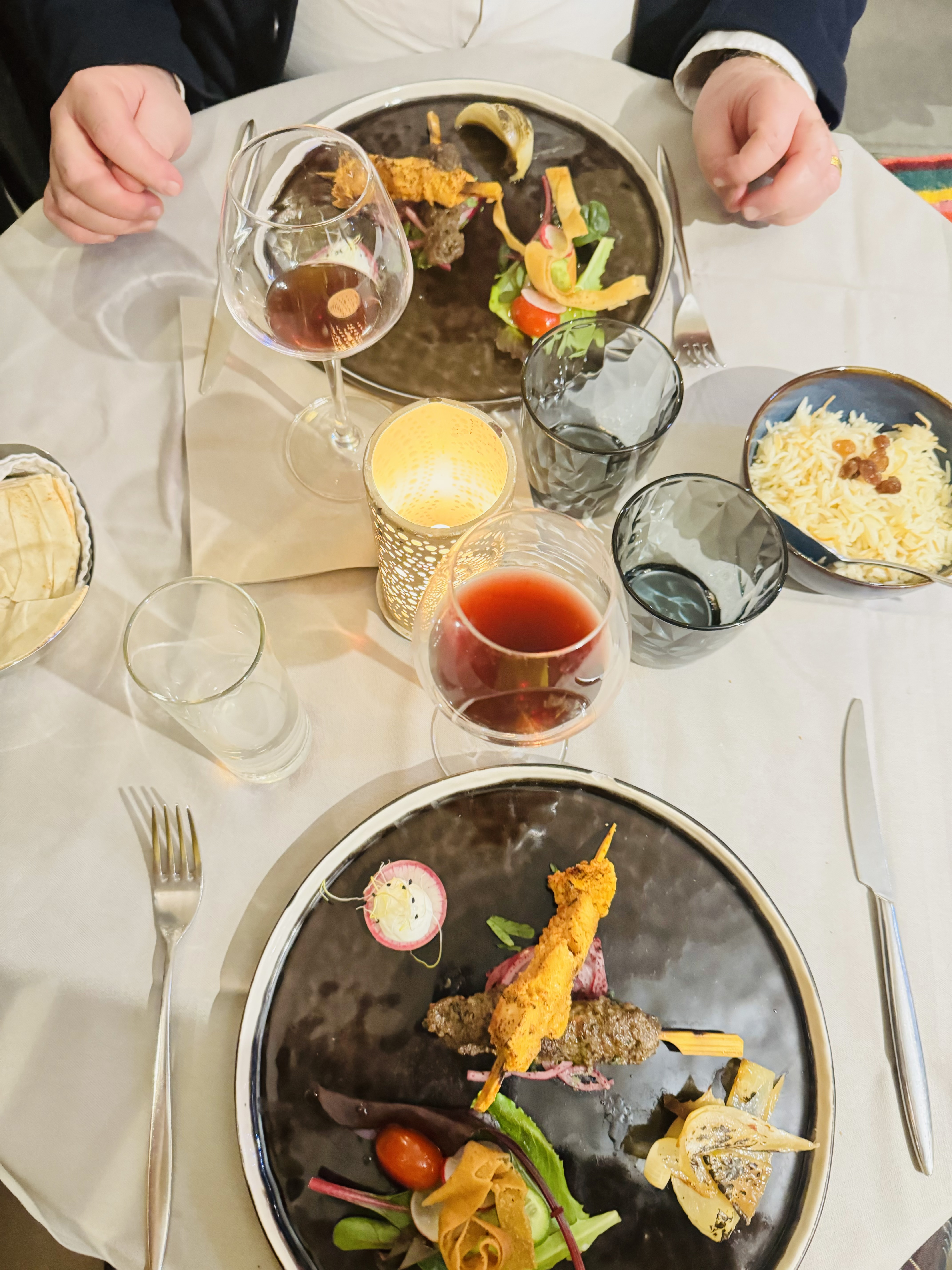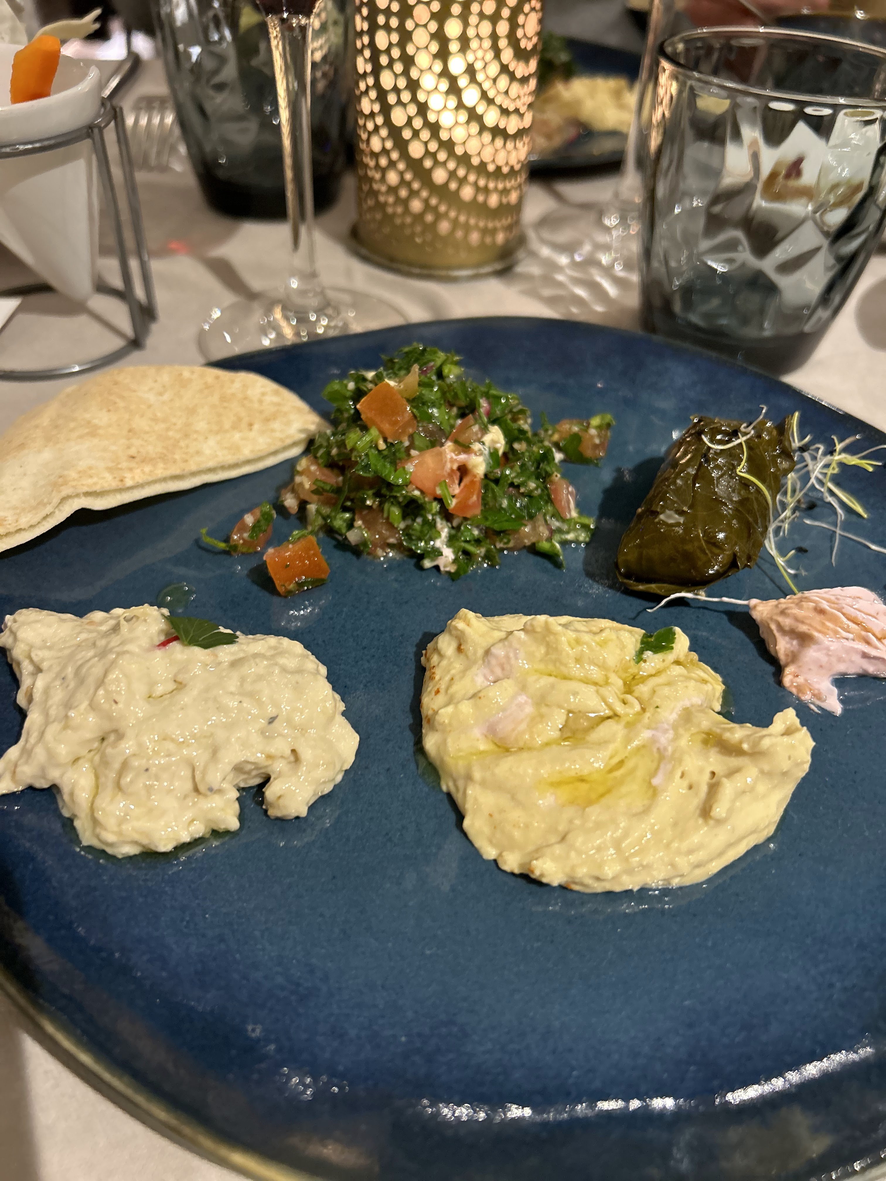 Très bon restaurant, accueil très sympathique, cuisine raffinée, si vous ne connaissez pas la cuisine Libanaise je vous conseille de prendre les formules, nous personnellement nous avons pris la formule Mezza extra + dessert: vous avez l’apéritif aux choix, pour commencer on nous a servis comme entrée un assortiment d’hors d’œuvre froide en suite ils vous servent des assortiments d’hors d’œuvres chaud suivis comme plat principal d’une brochette de poulet et d’une brochette de viande hachée ( kafta) et pour finir le dessert qui est un assortiment de 5 petits desserts, 3 petits gâteaux une date et un flan Libanais accompagné d’un thé à la menthe ou un café aux choix. Ce menus nous a fait découvrir la cuisine libanaise car il est très varié et cela nous a permis de goûter et de découvrir de nombreuses nouvelles saveurs. On a bien mangé bien bus et on a eu la peau du ventre bien tendue 😜😂👍 Ha oui pour les amateurs de vins 🍷 je vous conseille le vins libanais qui est très fruité.