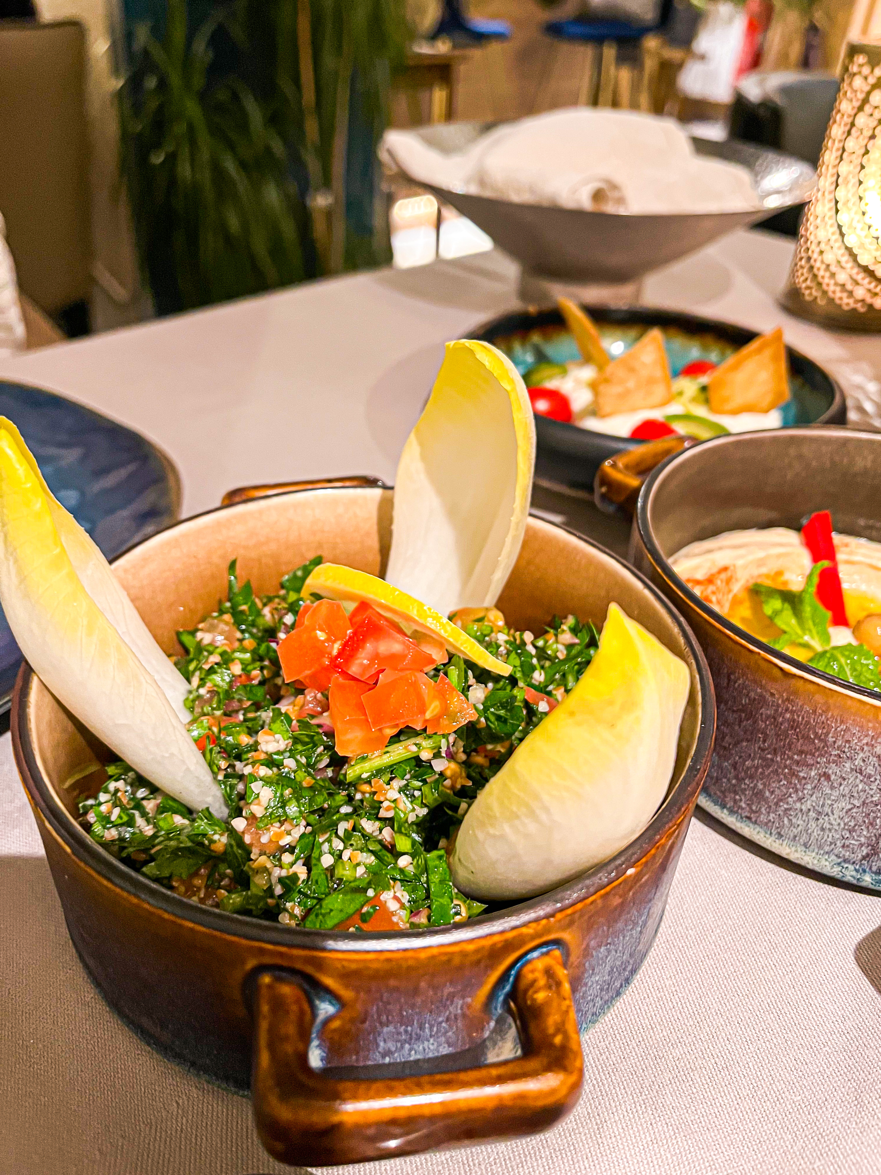 Lieux sympathique, la décoration est très épurée. J’ai pris un cocktail sans alcool aux dattes qui était très bon ainsi que le menu découverte. Habituée des restaurants libanais assez quantitatifs j’étais septique quant aux portions servies mais au final c’est pile ce qu’il fallait pour bien manger sans être écœuré.