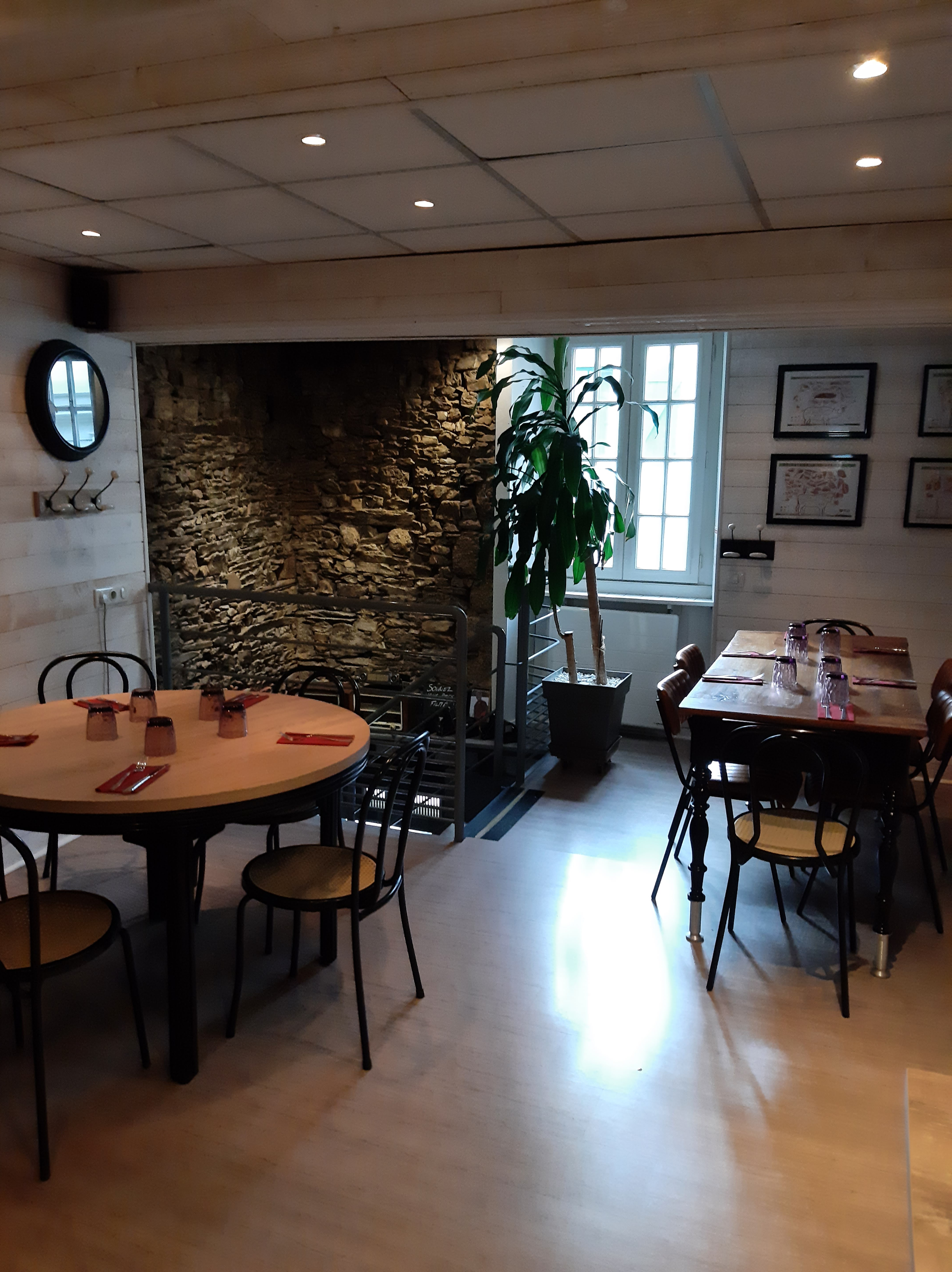Cuisine créative et de qualité. Responsable et personnel très agréables. Joli endroit au charme de l'ancien avec pierres et poutres apparentes. Situé en centre historique