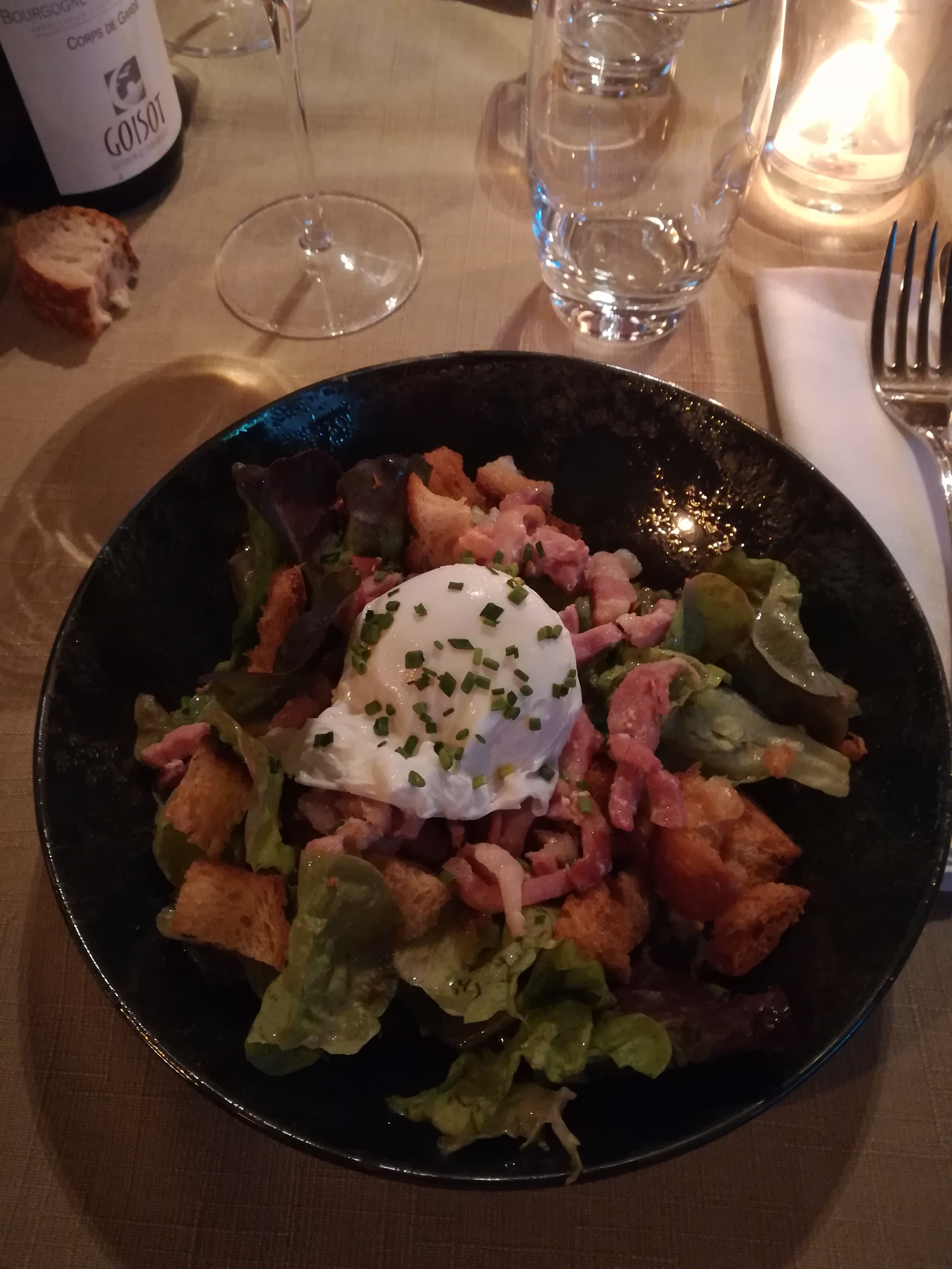 Pommes de terre exceptionnelles, œufs meurette parfait, léger bémol sur le coq un peu sec mais sur une viande comme ça c'est difficile que ce soit fondant. Lieu magnifique, on y reviendra certainement quand on passera dans la région !