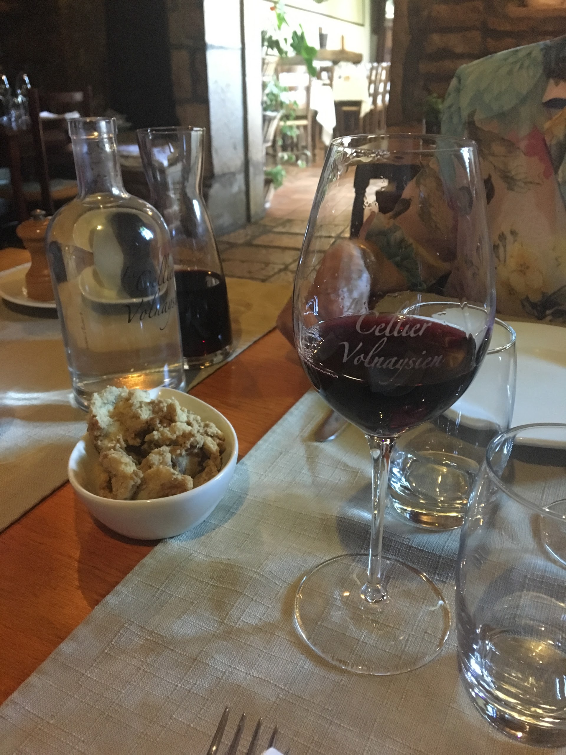 Très joli restaurant au milieu du village de Volnay dans les vignes bourguignonnes. On déguste des plats à base de vin. La spécialité : Les œufs meurettes et le coq à la lie de vin. Vraiment très bon. Le restaurant a une terrasse ombragée sous un grand tilleul.