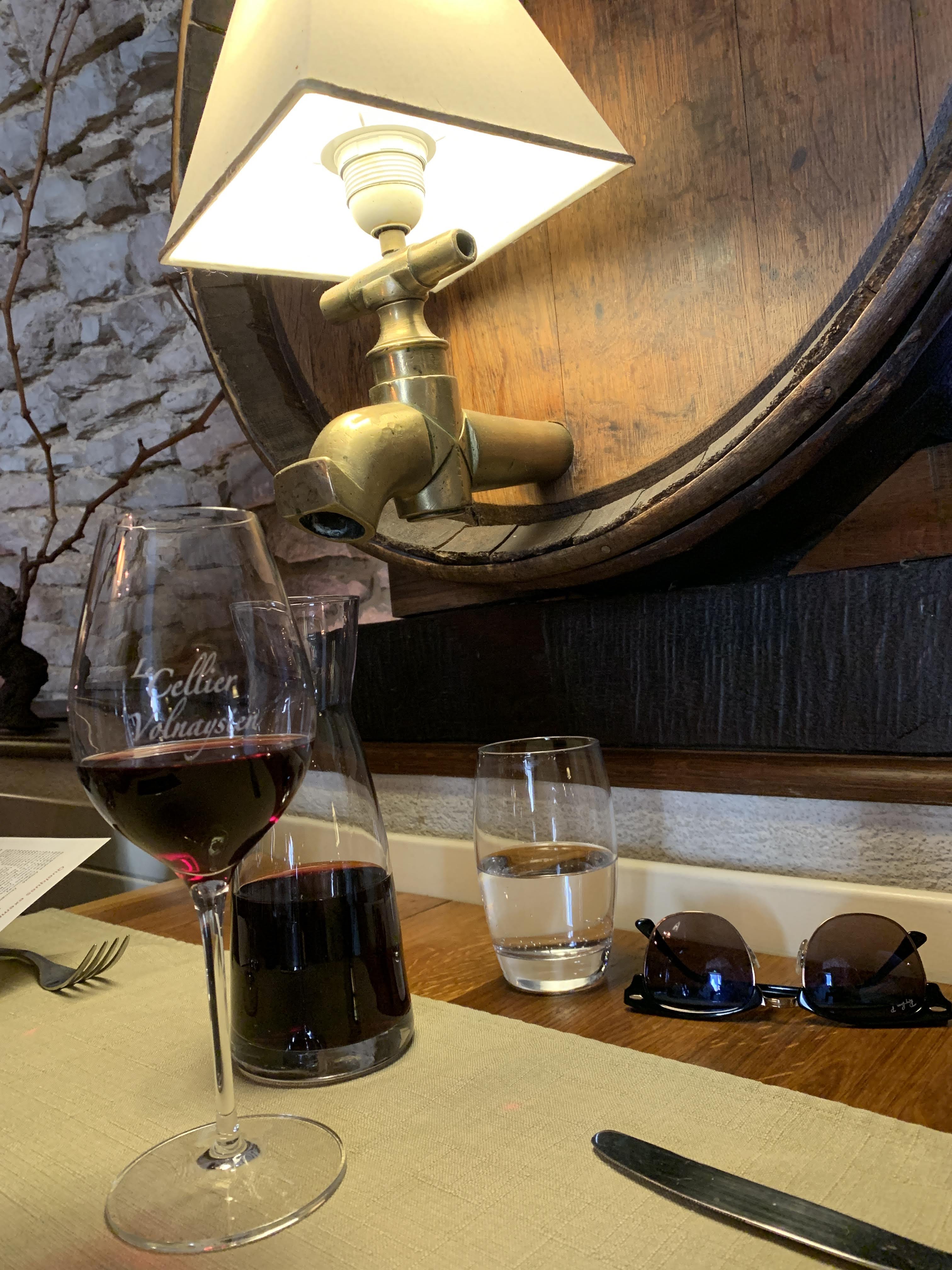 Cuisine de campagne française simple mais sélection de vins fantastique. Nous n'avons pas eu de chance d'être assis dans l'extension qui manquait d'ambiance (et était pleine de familles avec de jeunes enfants). Les tables de la cave principale étaient bien plus belles.
