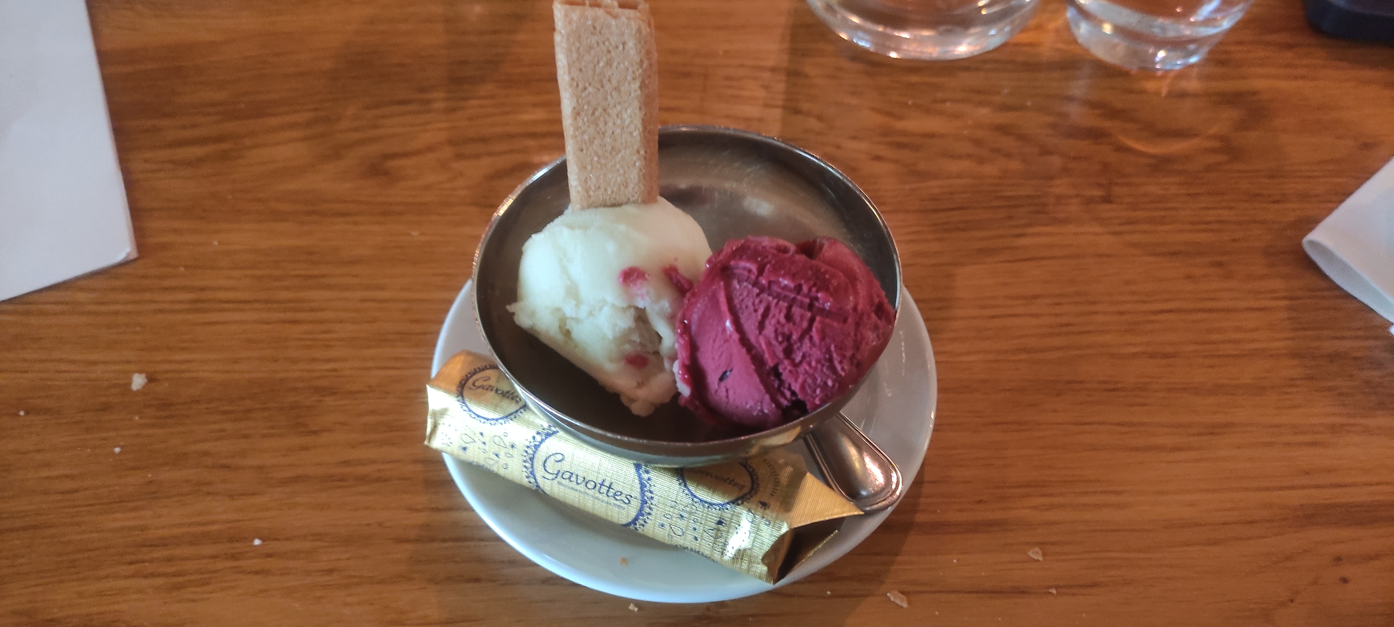 Très bon oeufs en meurettes et bons desserts. De la cuisine de qualité. Endroit charmant, Choix de vins impressionnant, service un peu froids. Lors de notre déjeuner il y avait beaucoup de tables occupées par des groupes de 6-8 personnes ( genre tour touristique guidé) qui rendait le lieu moin pittoresque.