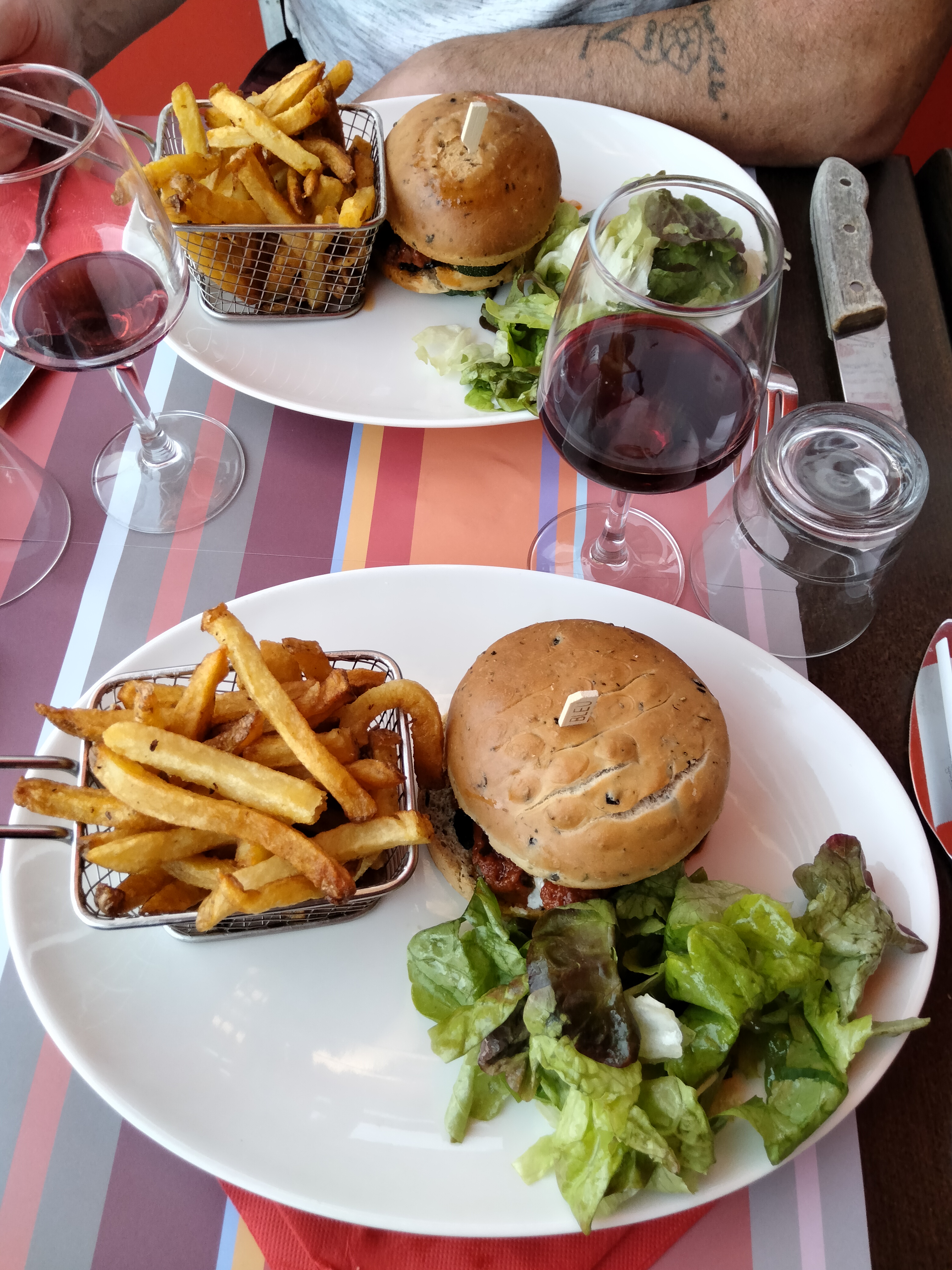 Dîner en terrasse semi couverte face au bord de mer. Service rapide malgré le monde. Plat demandé Burger aux filets de rougets, frites maison..très bon..je recommande vivement.