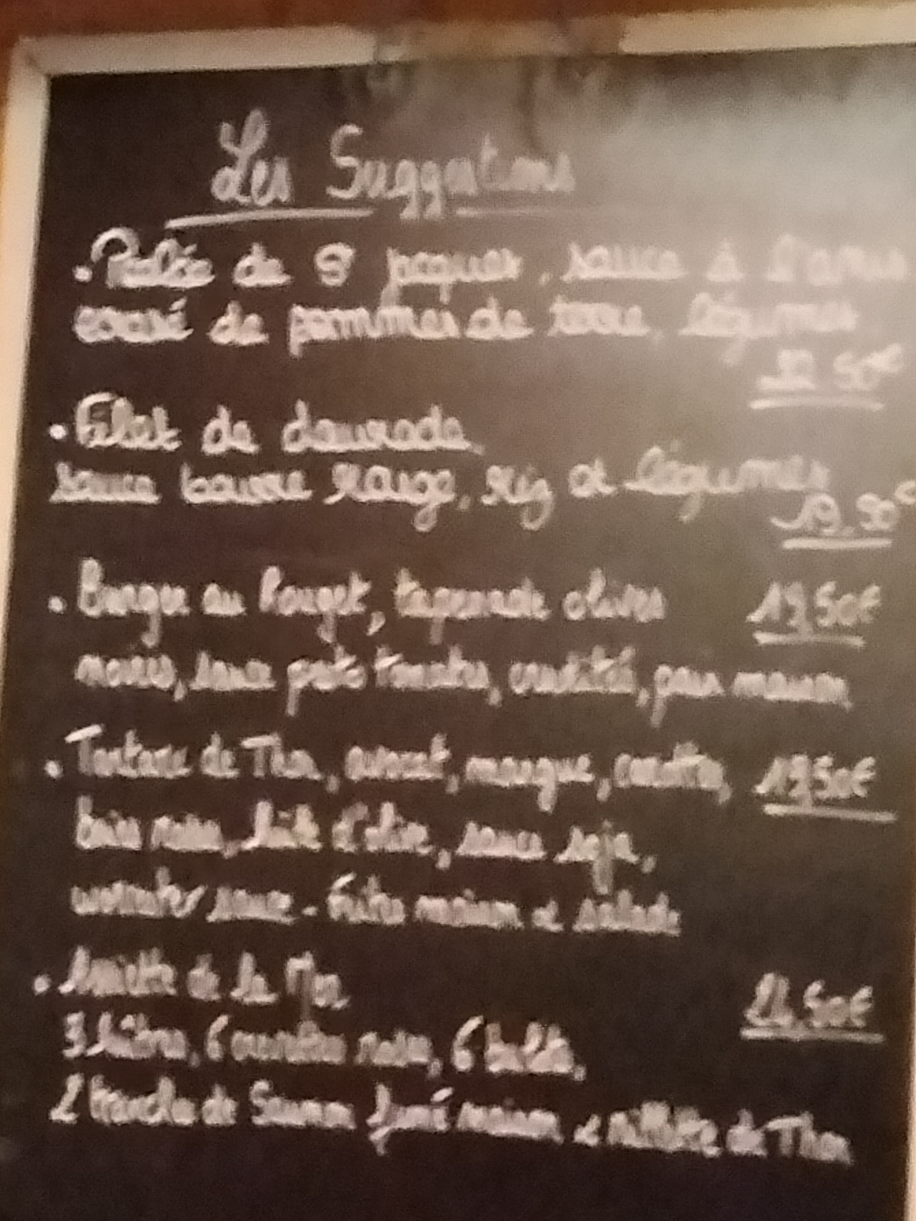 Cela faisait quelques temps que je n'étais pas allée au resto avec mes enfants, avec une envie de vue mer sans être prise pour une touriste parisienne, et je ne regrette pas notre choix. Un accueil chaleureux et convivial, mais je connaissais, sans surprise et comme d'habitude, c'est vraiment plaisant. En plus du paysage marin, nous avons eu des assiettes bien garnies, avec de vraies frites, quitte à prendre des calories autant que cela soit avec du goût. Pas de menu, mais des propositions de plats appétissants. Nous nous sommes régalés, ma grande et moi avec un tartare maison pantagruélique, et mon garçon avec un Hamburger rouget. L'addition est en corrélation avec le contenu des assiettes, pas de premier prix, mais dans ce cas il faut opter pour les chaînes de restauration, donc vraiment un savoureux moment familial.