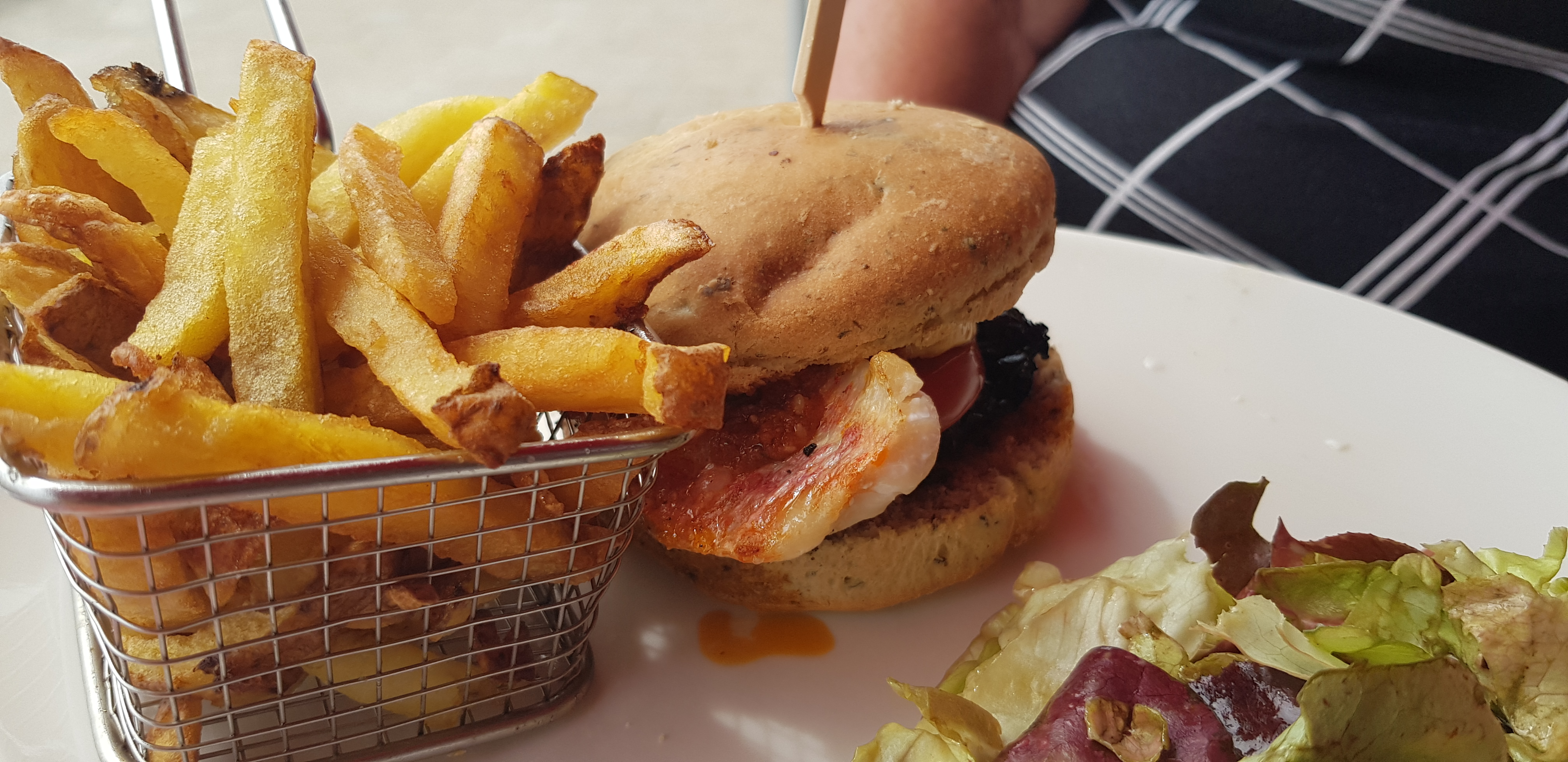 Service impeccable Personnel souriant Bon rapport qualité prix pour un établissement situé face à la mer Nous avons bien déjeuné... mayonnaise et ketchup accompagnant les plats sont faits maison. Le menu enfant est intéressant puisqu'il propose volaille ou poisson... ca change des menus steak haché ! Assiette de poisson impec Burger de rouget plutot sympa et original Un établissement que je recommande