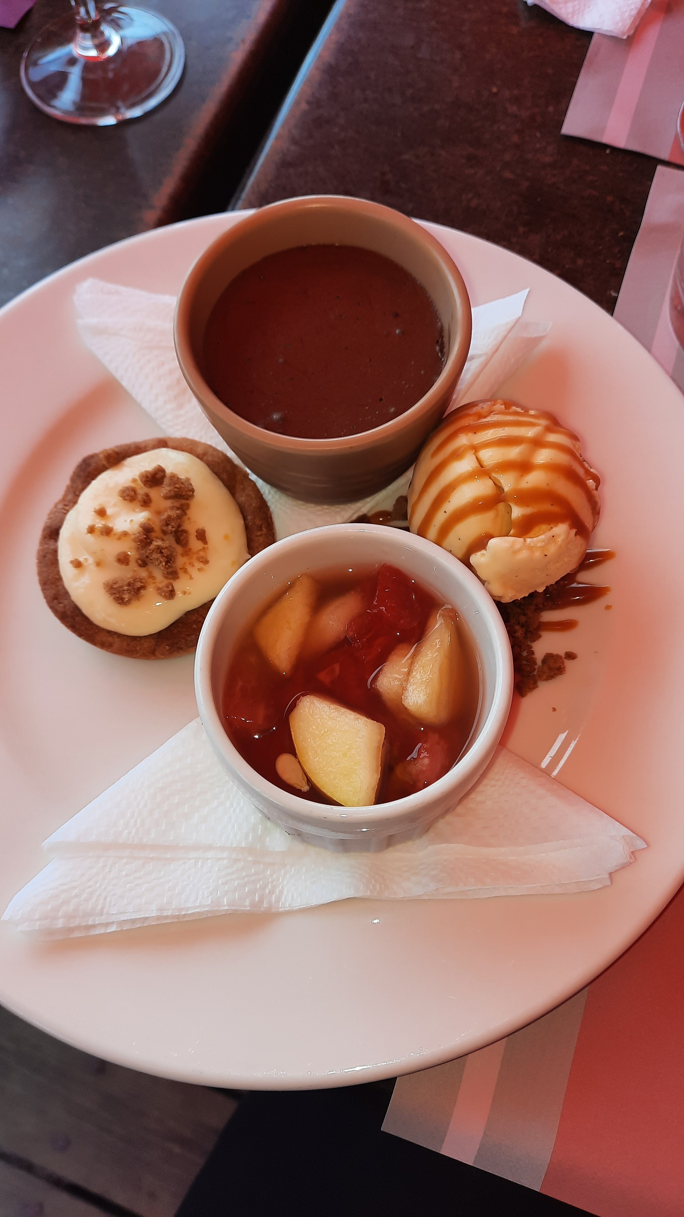 Une table disponible pour 2 personnes à 13h sous le soleil à l'extérieur avec une vue de malade. Une entrée délicieuse avec un dosage parfait des ingrédients à mélanger... 🤩 un plat tout aussi généreux et délicieux que l'entrée, comment ne pas résister au dessert ? Je vous le demande ! Félicitations au chef qui a réalisé l'entrée plat dessert du menu du jour digne d'un certain Philippe quelque chose 🙃. Quand on aime on ne compte pas ! J'y retournerais avec plaisir pour faire découvrir à la famille et aux amis !