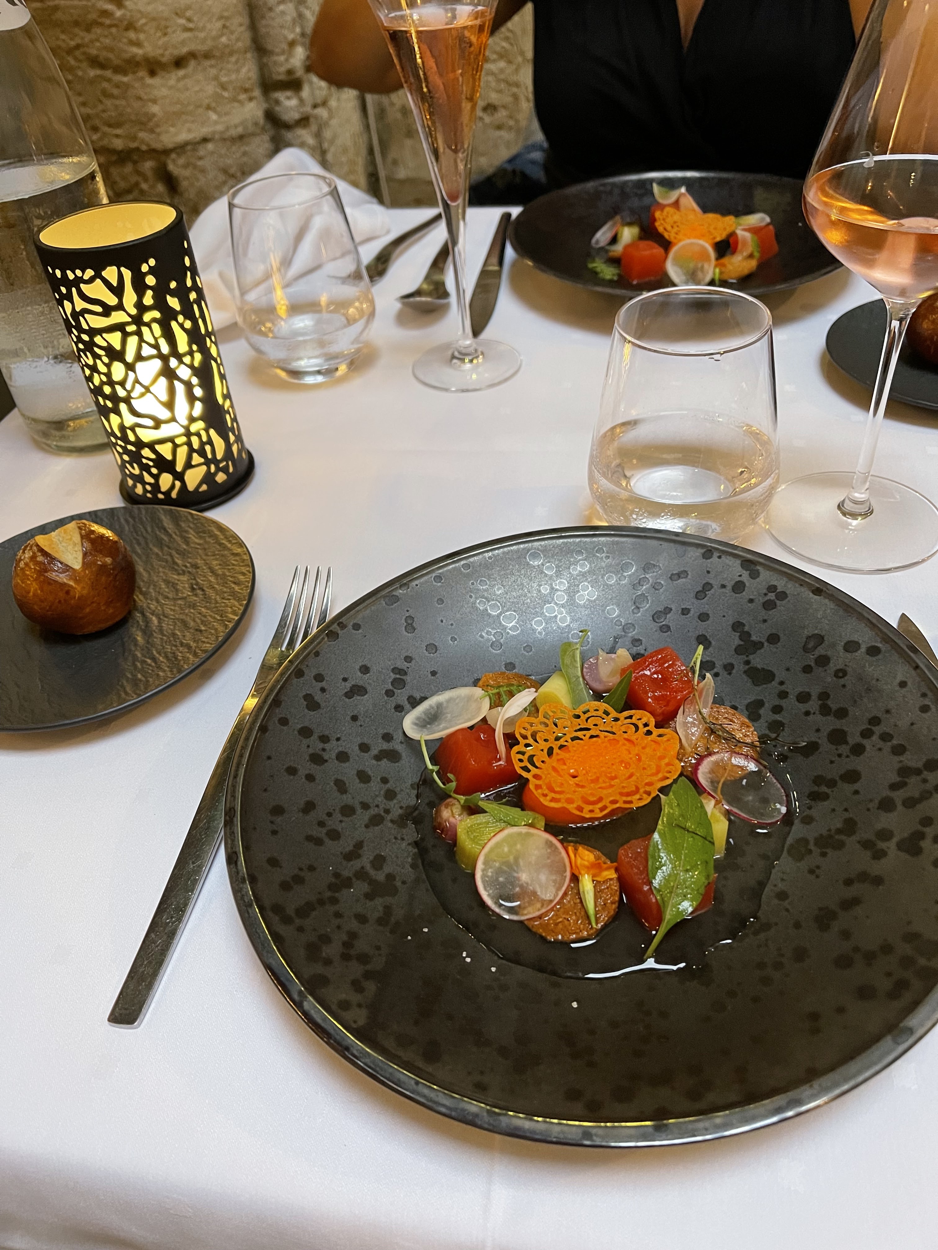 Un cadre magnifique pour une cuisine gastronomique à la hauteur du lieu historique !! Des voûtes du XIVème avec un jeune chef bien dans le XXIème siècle Un endroit à vivement recommander Personnel très agréable et accueillant, discret , de bons conseils Parfait