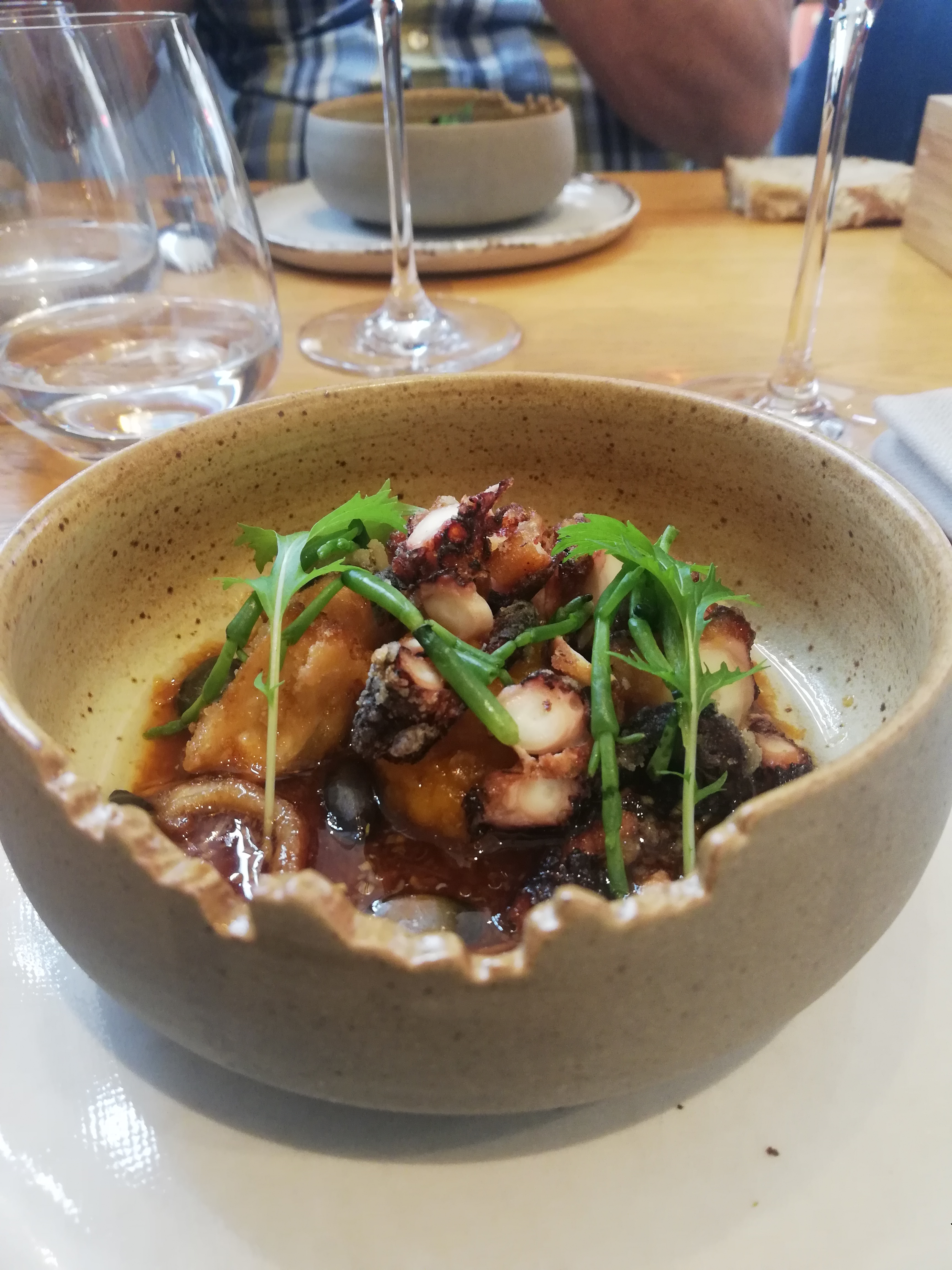 Nous avons choisi le menu dégustation en 6 plats. Plats fins, délicieux et copieux. Découverte de nouvelles saveurs dans une ambiance conviviale. Les serveurs sont aux petits soins, très agréables, de bon conseil ! Accords mets et vins parfaits. Rien à dire. On repart le ventre bien rempli, les papilles satisfaites et le prix me paraît justifié pour une telle prestation. Merci pour ce bon moment, j'ai hâte d'y retourner ! PS: N'hésitez pas à prendre le poulpe, spécialité du chef !