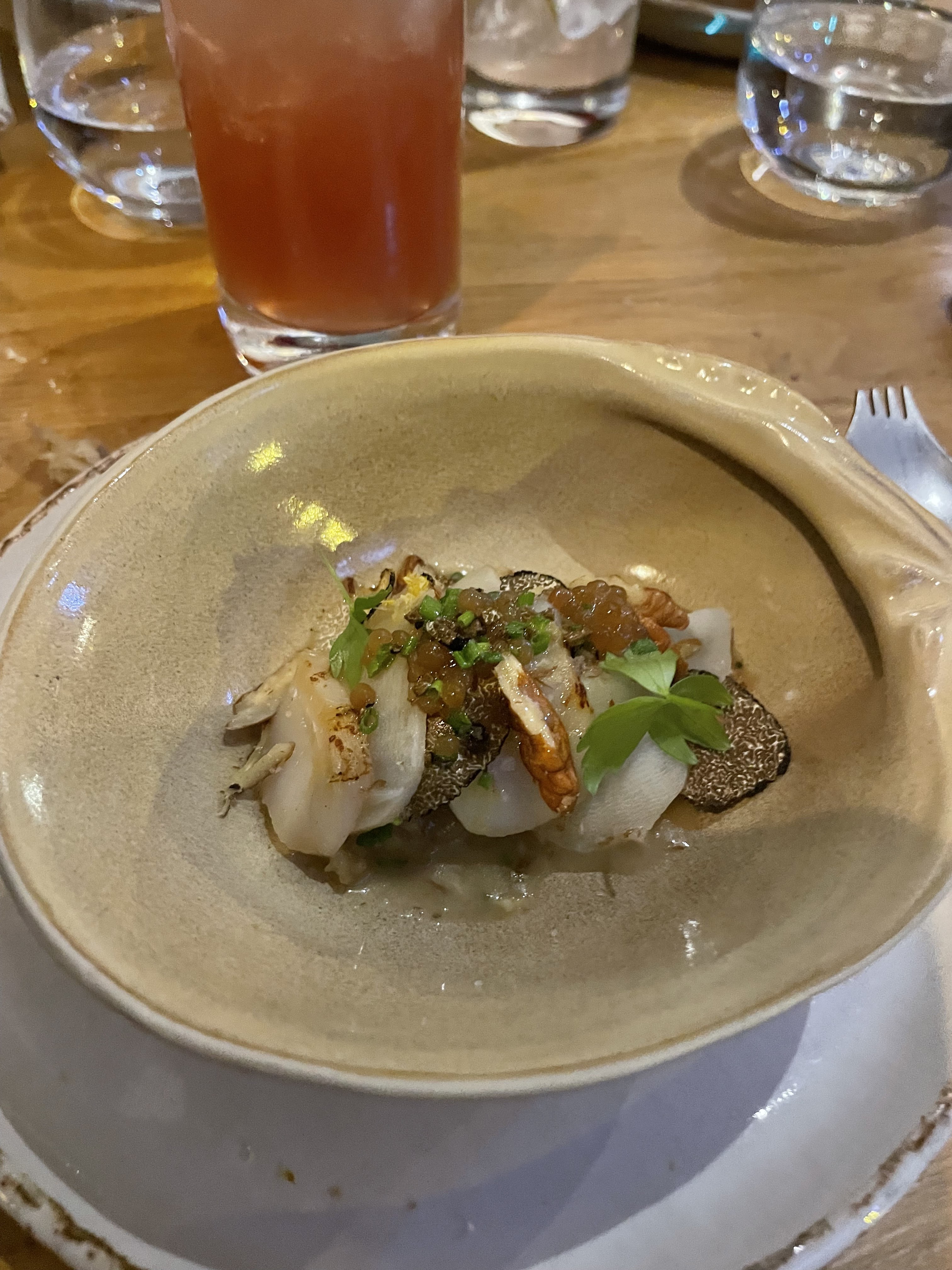 Délicieux, et service impeccable. Ambiance cosy, équipe à l’écoute, sympa et de très bons conseils. Chaque plat est très bien travaillé, les saveurs sont dingues. Nous recommandons !!!