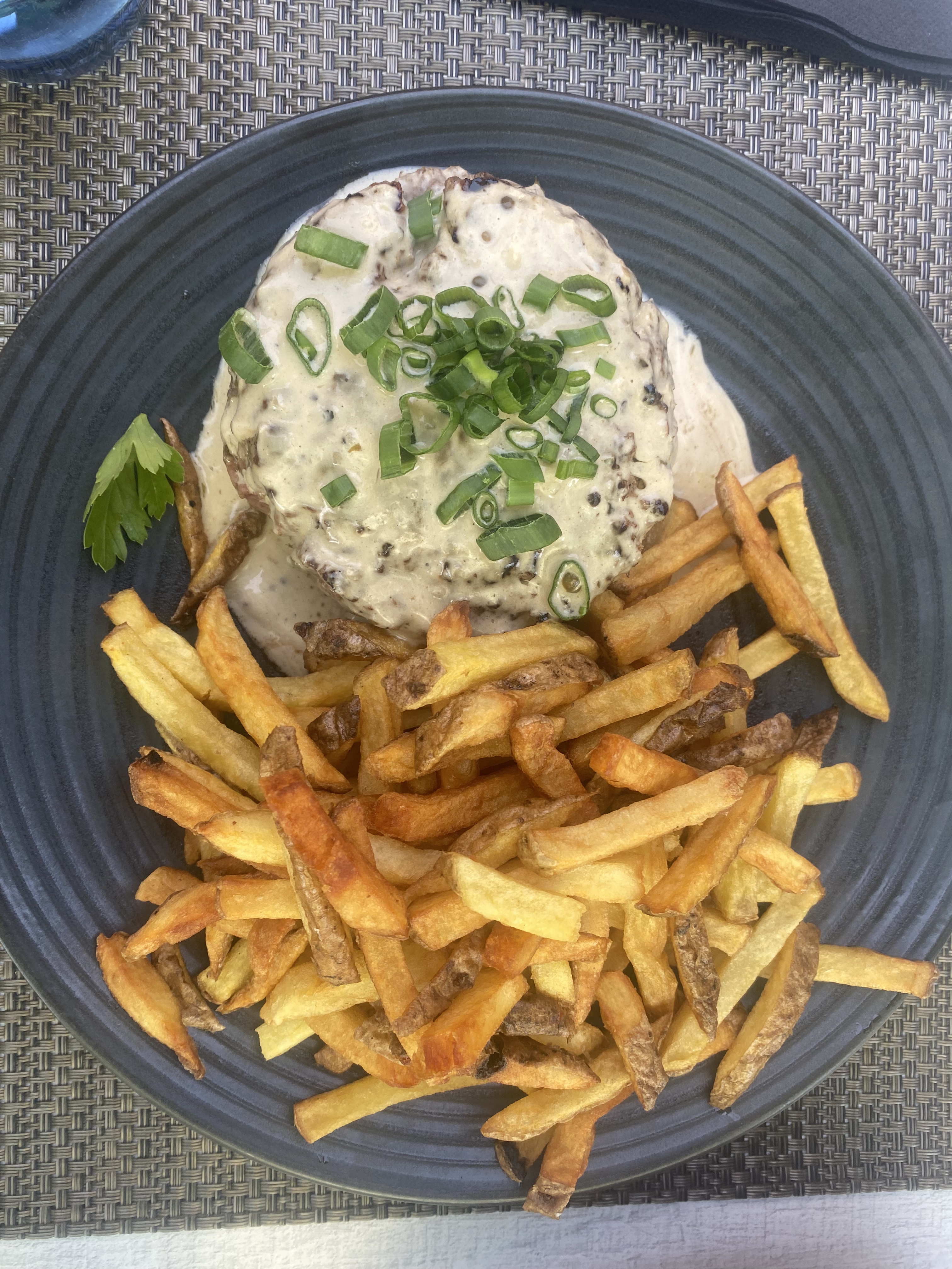 Travers de porc très bon. La marinade est différente de ce qu’on trouve habituellement, personnellement j’aime beaucoup. C’est bien cuit, mais pas trop, tient sous la dent sans être trop dur ou trop sec. Le steak saignant est trop cru à mon gout. Et les pâtes bolognaise du menu enfant n’est pas bon du tout.