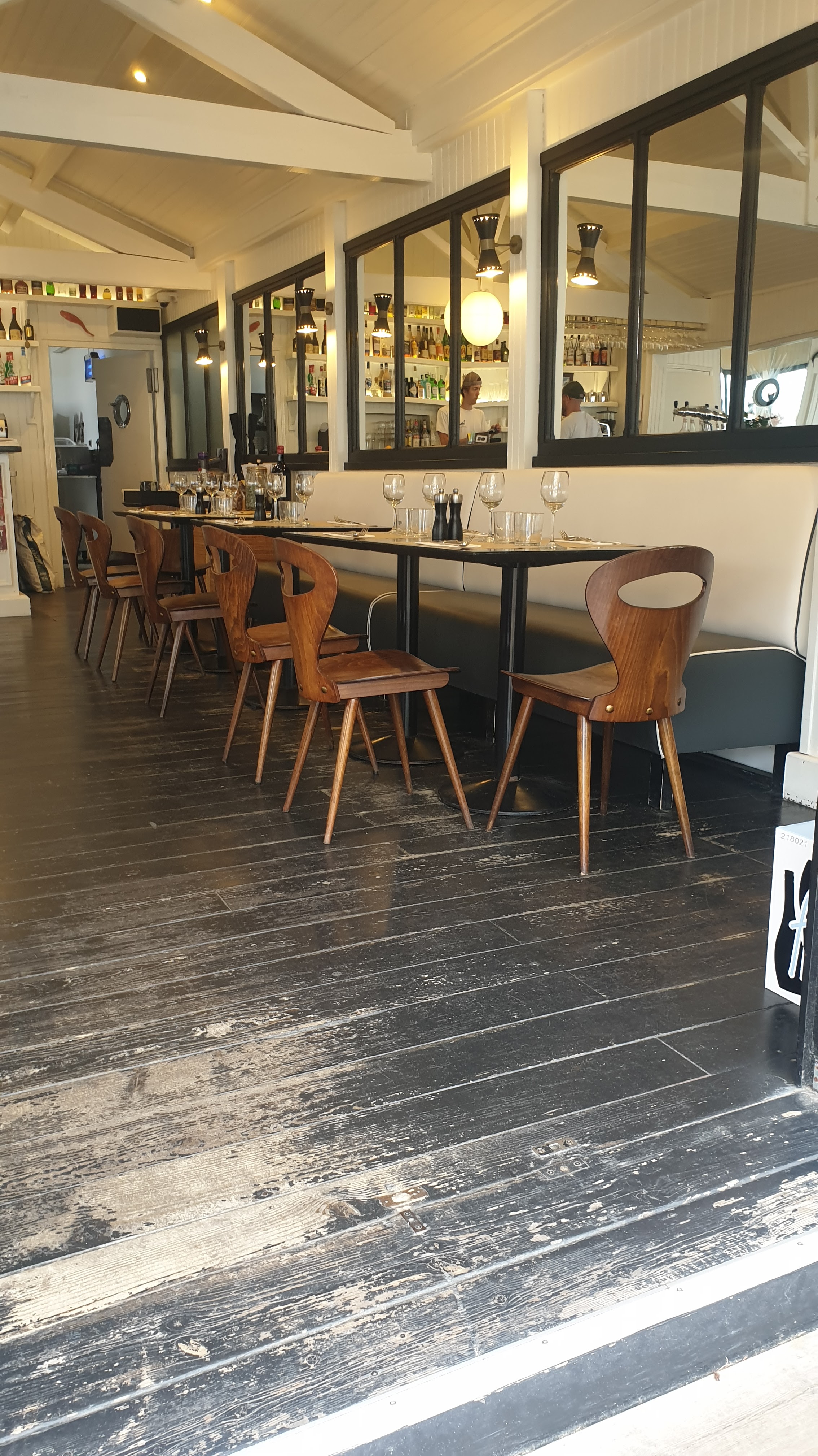 Nous avons passé un très bon moment dans ce joli cadre, la musique d'ambiance est sympa, pas trop forte, on se sent bien dans ce restaurant. Le service était très bien également, sympathique et disponible. Néanmoins, nous avons trouvé certains plats trop chers pour leur qualité, la petite burrata à 15€, desserts à 10€, un peu excessif à notre goût. L'andouillette était très bonne et la tarte champignons correct mais un arrière goût, peut être la qualité des oeufs... Manque de choix provenant de la mer, dommage quand on vient au cap ferret :)