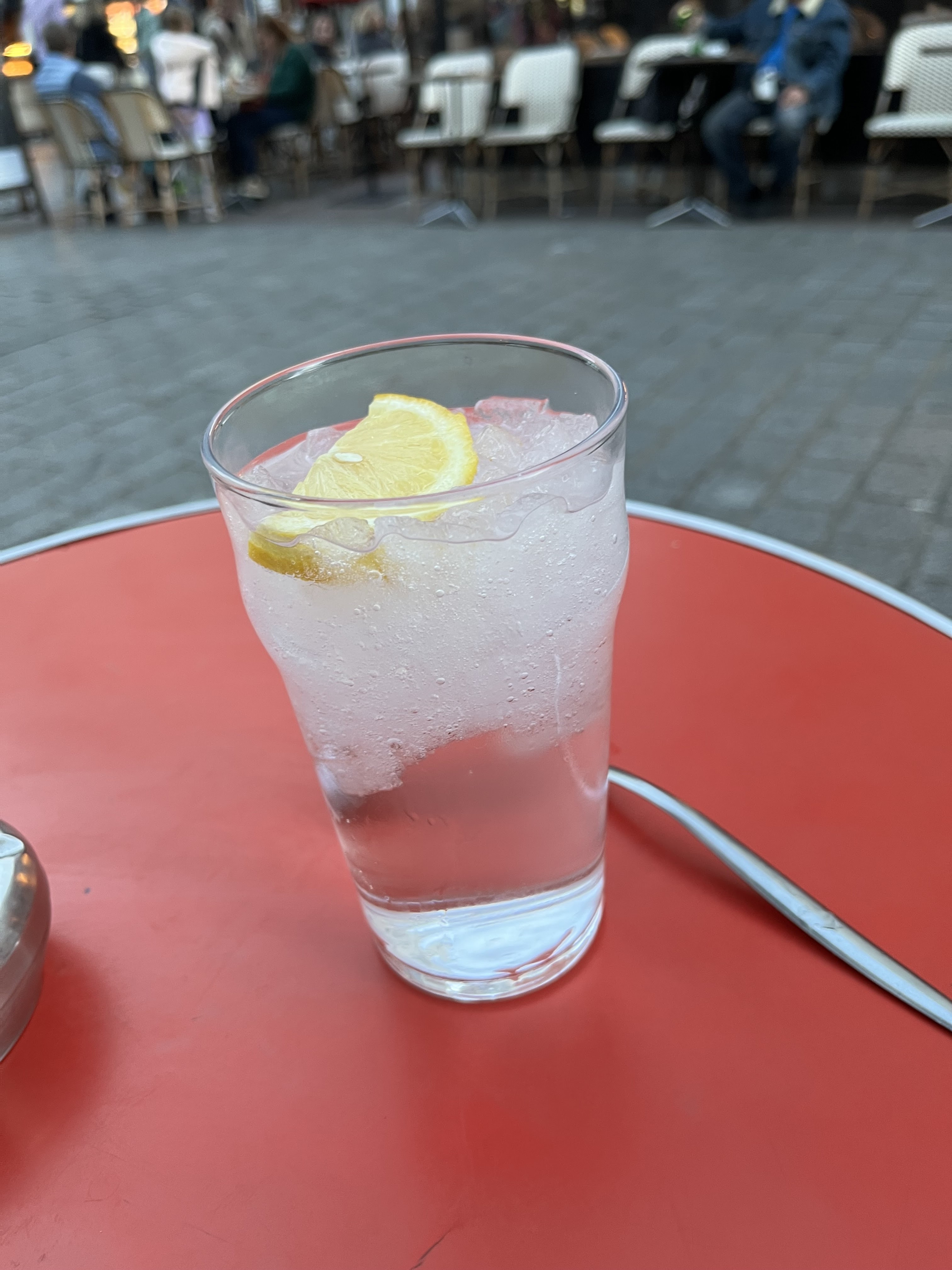 J'ai commandé un Perrier et j'ai reçu un verre d'eau gazeuse avec très peu de bulles et beaucoup de glaçons. Je ne le recommanderais pas. Ce verre d'eau coûtait 8 euros.