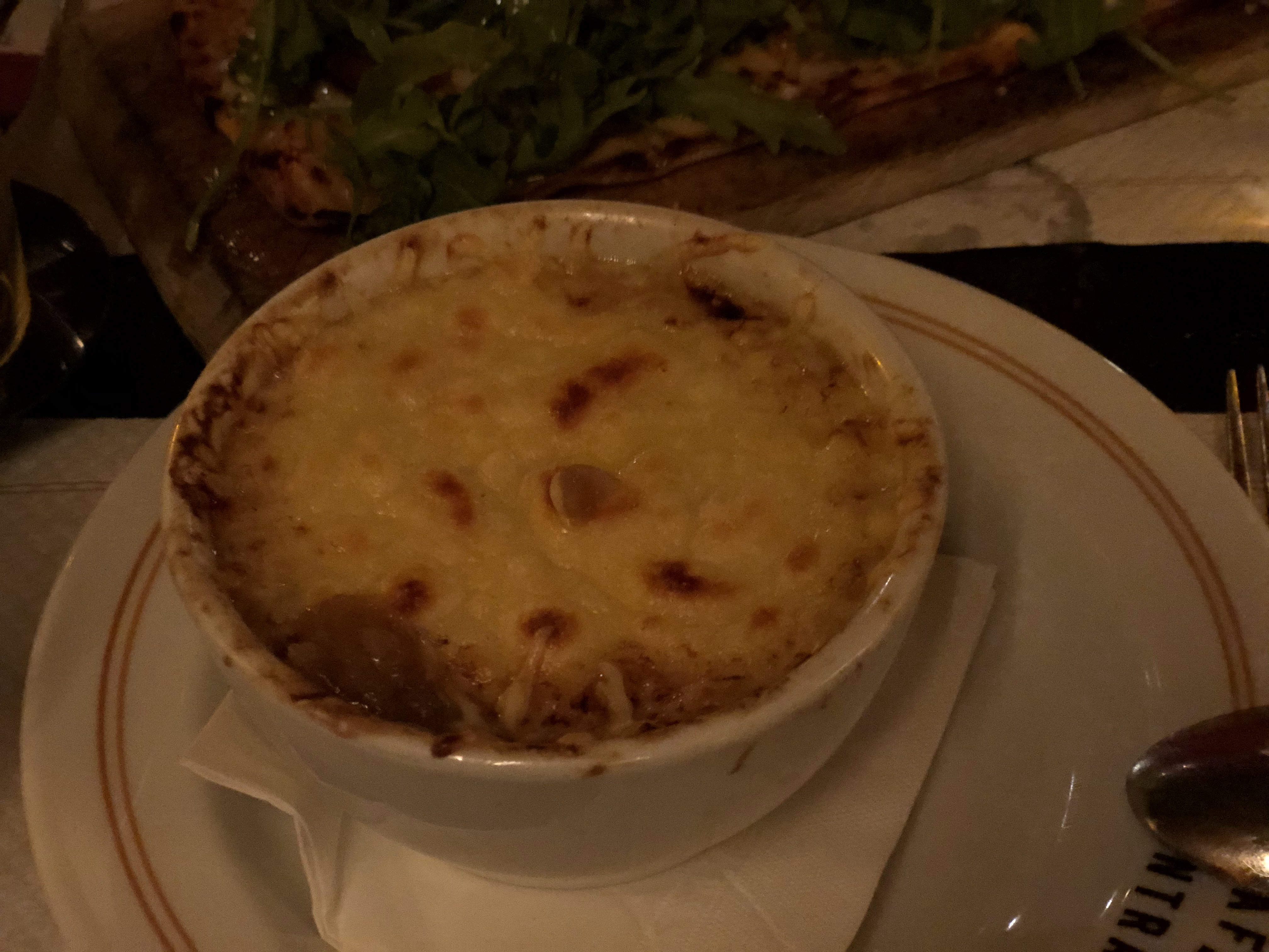 Emplacement reconnaissant et la nourriture était à tomber! Nous y sommes allés notre première nuit et nous avons adoré. Nous avons dîné ici 3 nuits au cours de notre séjour de 7 jours. La soupe à l'oignon française était à tomber! Tout ce que vous voulez dans un bol de soupe à l'oignon, beaucoup de fromage, un bouillon plein et savoureux et du pain français croustillant.
