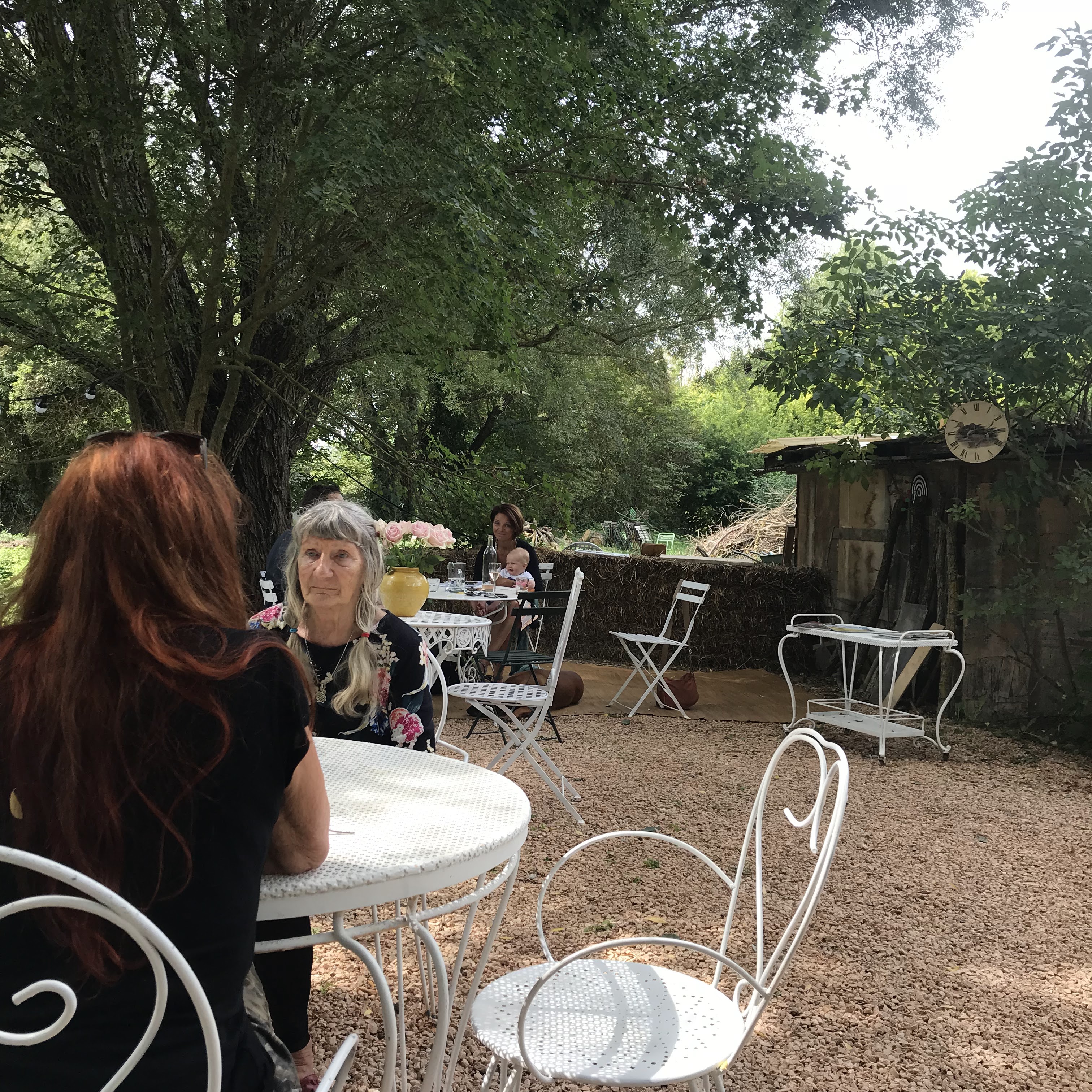 Tout simplement génial.... Cadre champêtre, cuisine maison bio au fond d'un champ à l'ombre et près d'un petit étang. Atmosphère décontractée et personnel super 👌....nous avons passé un très très bon moment. De plus ce lieu a été créé avec un projet particulier à découvrir. Merci pour ce merveilleux moment...