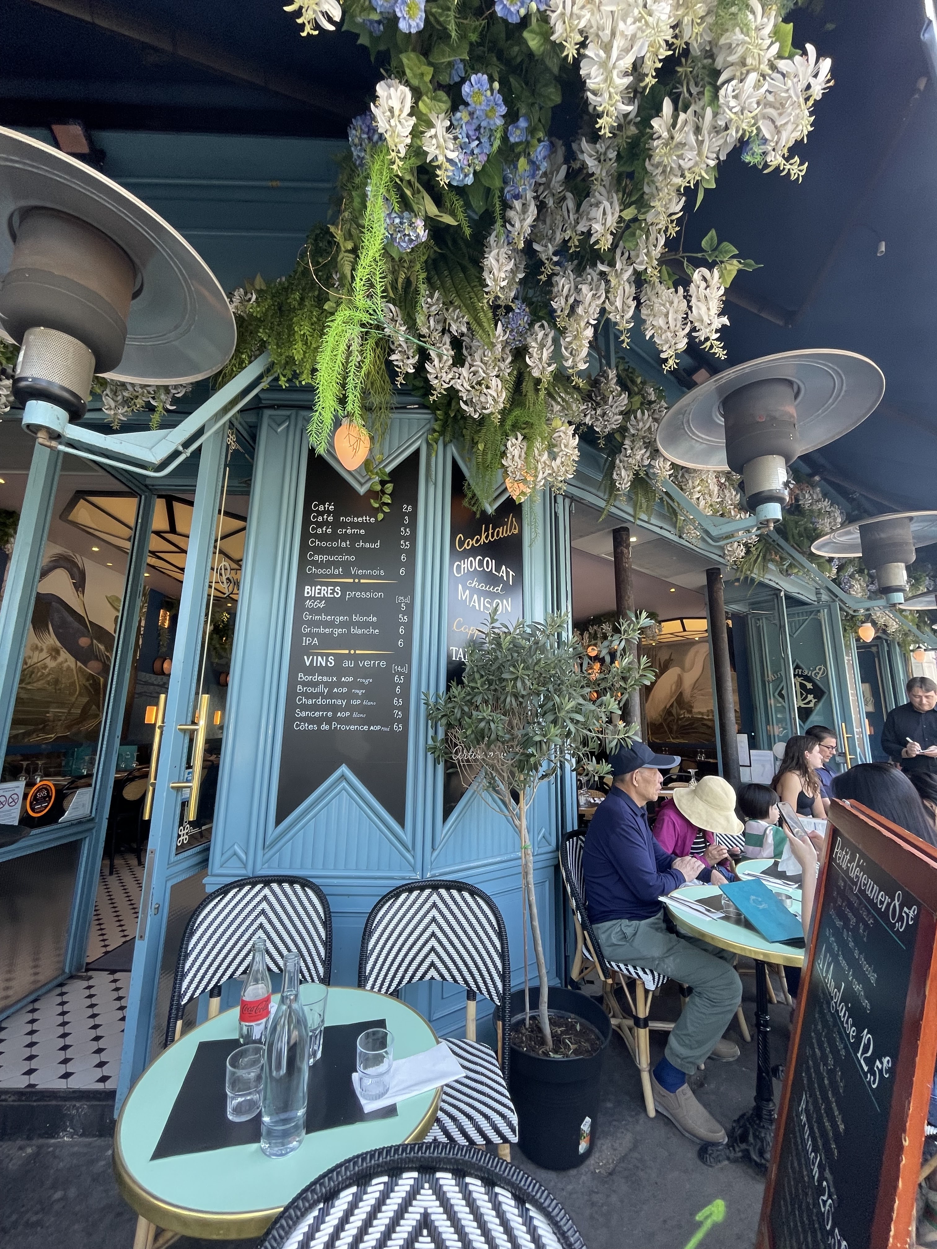 Nous sommes allés deux fois pour le petit-déjeuner (délicieuse tartine) et une fois pour l'apéritif (bon campari en verre). Typiquement français, idéal pour regarder les gens et se détendre🍞🍊🍹