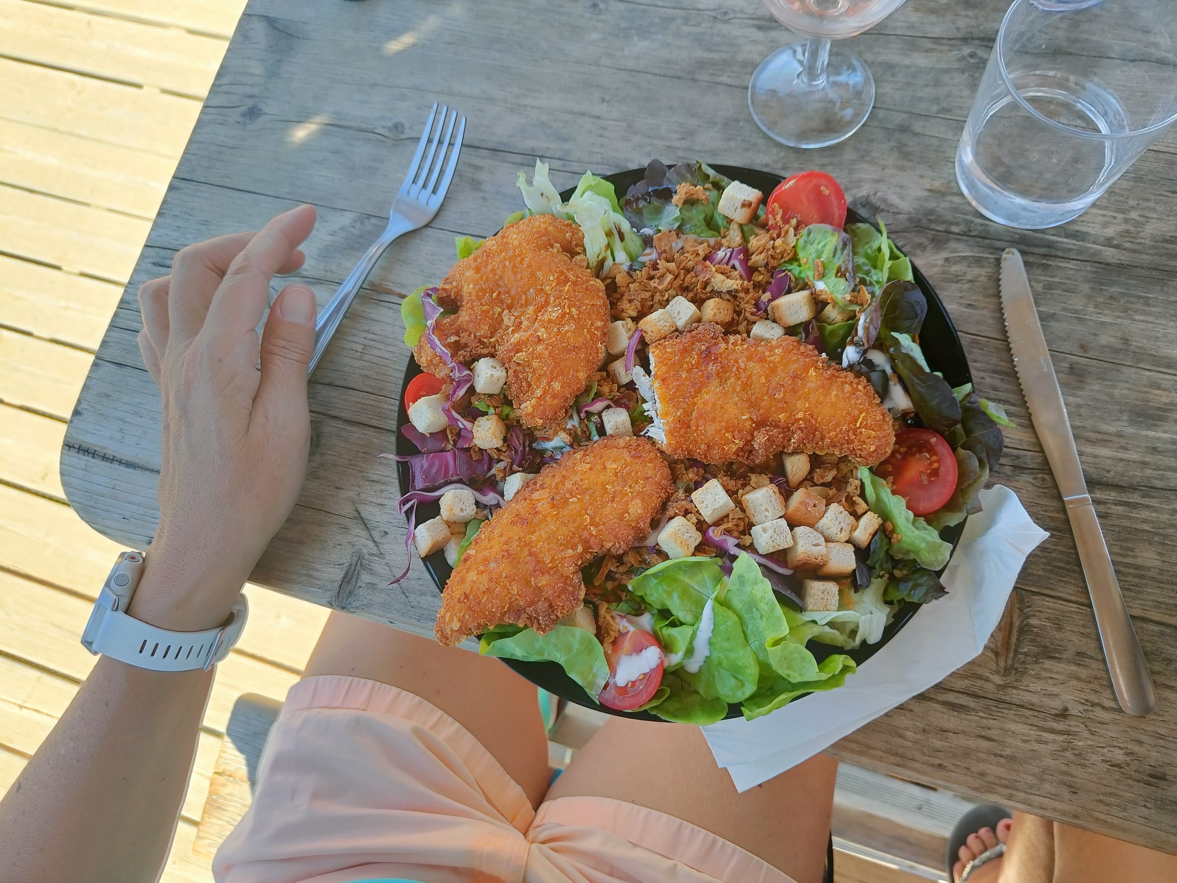 Personnel au top. On mange sur une belle terrasse bois sur le sable. Des salades plus que gourmandes et on repart en étant bien rassasié. Merci pour ce bon moment.