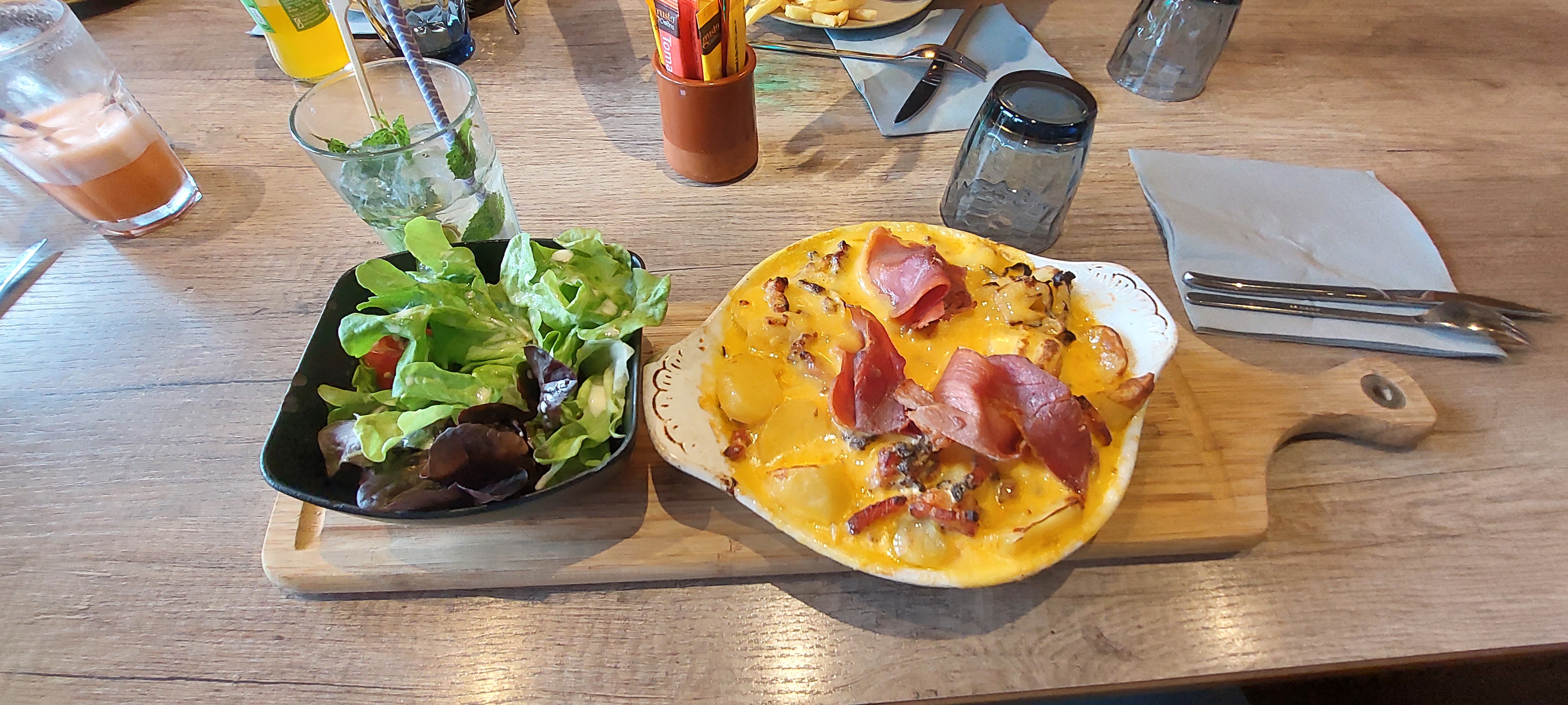 Mon mari et moi nous sommes régalés. La fondue savoyarde,une première pour nous et, aucun regret. La tartiflette était excellente, accompagnée d'une salade et de charcuterie. A refaire, si de nouveau de passage au Touquet