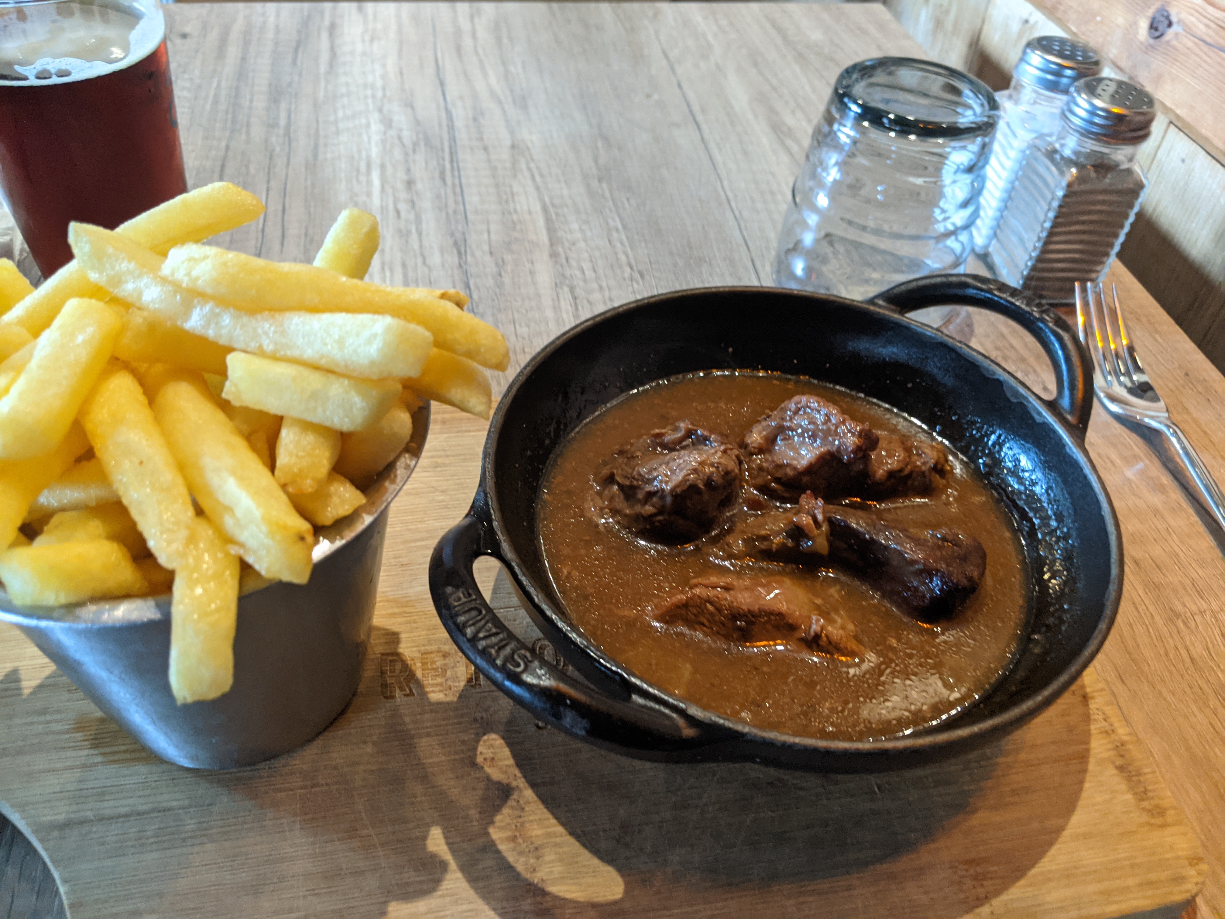 La carbonnade était très moyenne. Faite de bas morceaux, bcp trop gros. 😥😥 Frites qui semblent industrielles.😥😥 Je sais c'est un resto type savoyard, mais dans ce cas, pourquoi la mettre à la carte 🤔. En positif : de débarrasser des bières industrielles et proposer des bières locales c'est un bon point 👍👍👍