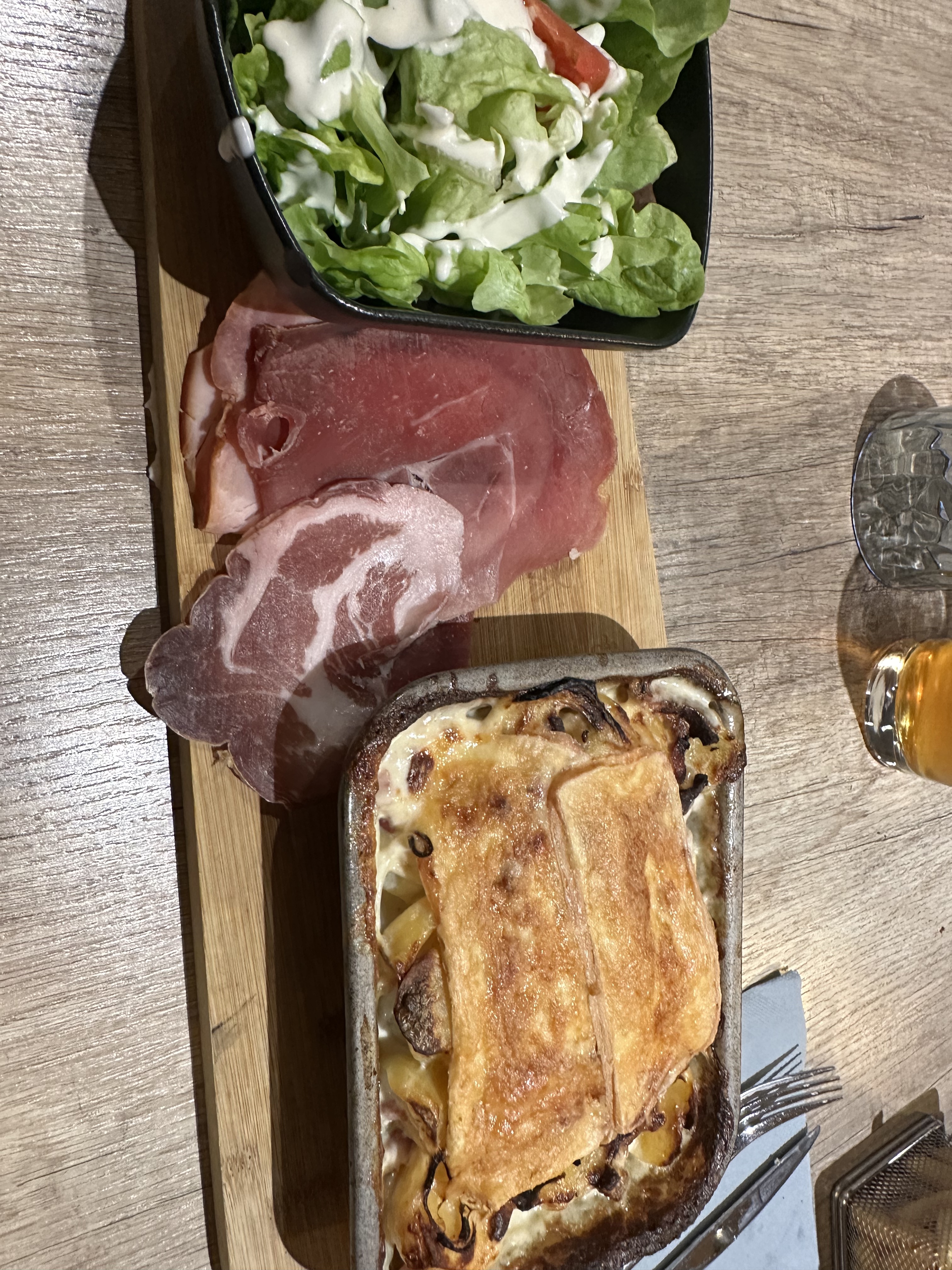 Excellent rapport qualité prix . Plat très copieux . On vous recommande cette adresse . Raclette , fondu au top . Enfin tout est top . Allez y les yeux fermer. Attention il faut réserver