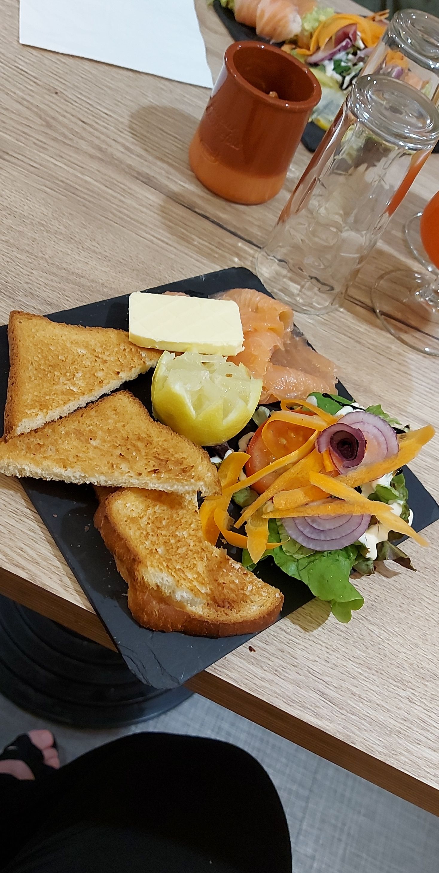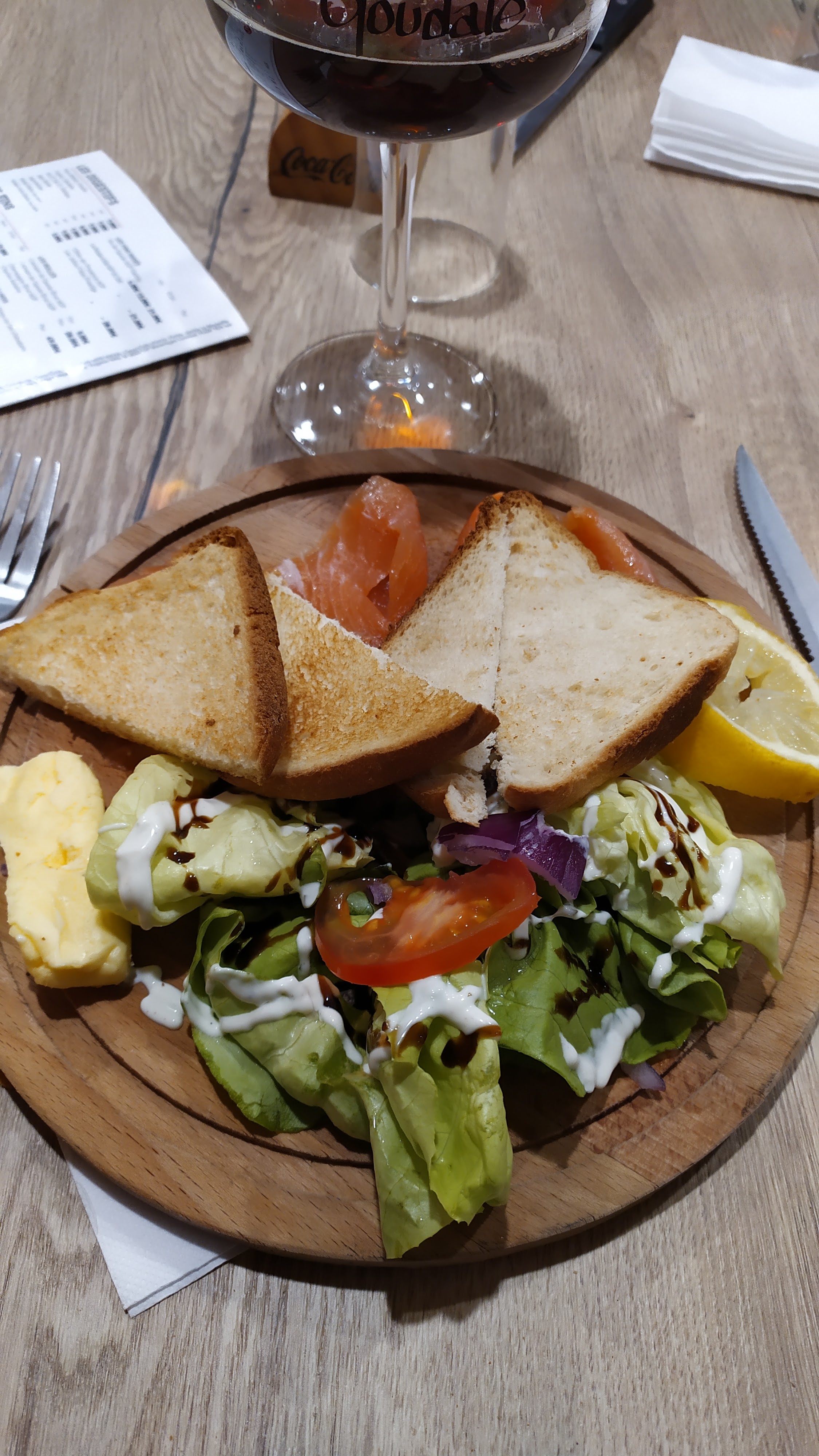 Nous y avons très bien mangé. La planche de convivialité est sympa : un peu de fromage toasté, un peu de charcuterie, un peu de saumon et un peu de salade pour deux, c'est parfait. Le welsh est bien copieux.