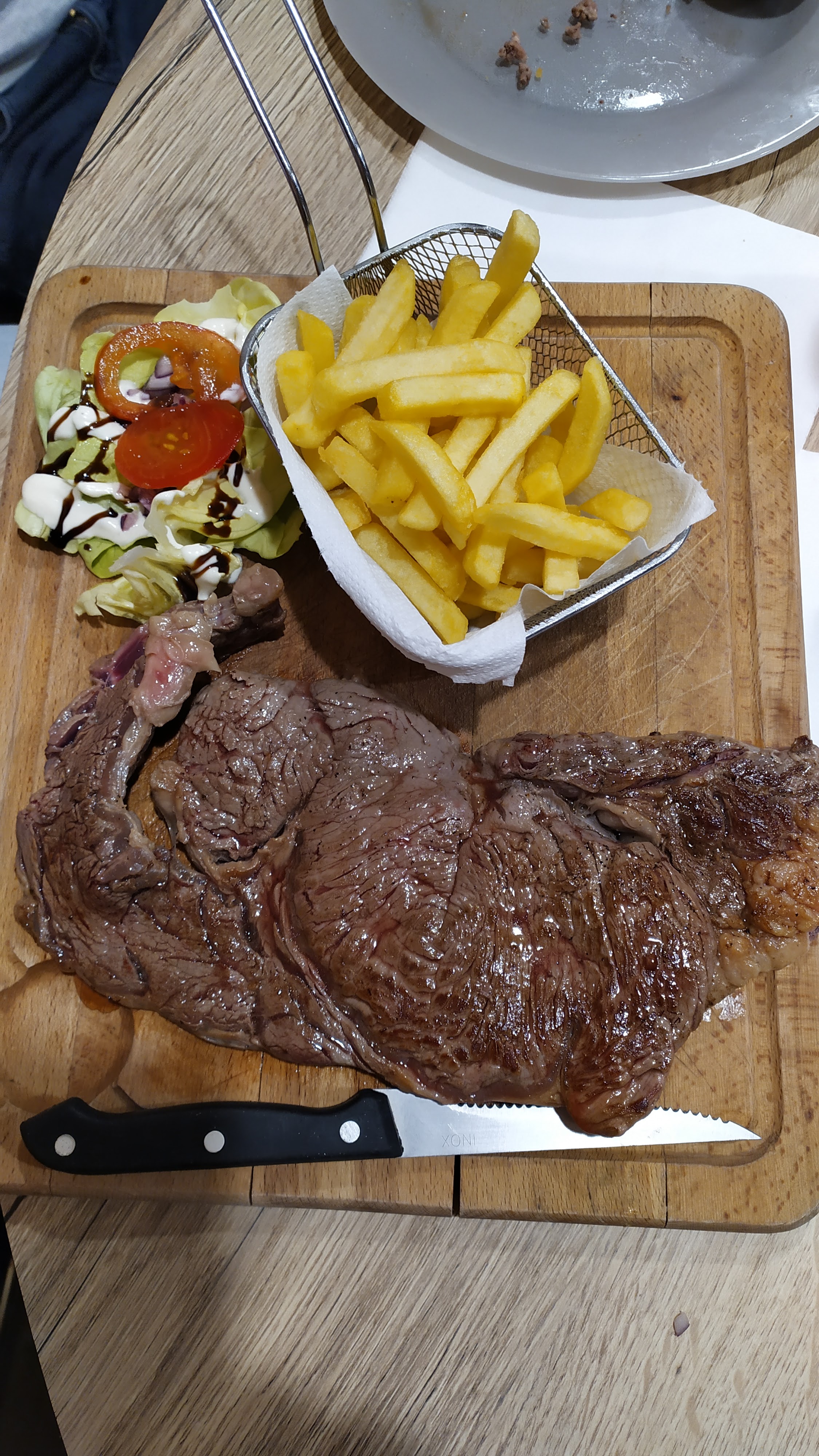 Le service mitigé ! Un serveur principalement en salle (professionnel et souriant)👍👌 L autre serveur principalement derrière le bar (pas agréable ,pas souriant,exprimant même son mécontentement envers une jeune collègue qui selon moi n a pas bcp d expérience , la fatigue n est pas une excuse ....surtout en restauration ! ) Et une serveuse avec le sourire et agréable .... plus d expérience et prevenante! Et qui a su rester très pro malgré mes observations ! Elle est Le point fort de cette équipe !! Déçu pour une entrecôte au même prix mais a réduit de quasiment de moitié en a peine 4 mois.... je laisse les photos en commentaire ! J espère être moins decus la prochaine fois ! Si il y a !!