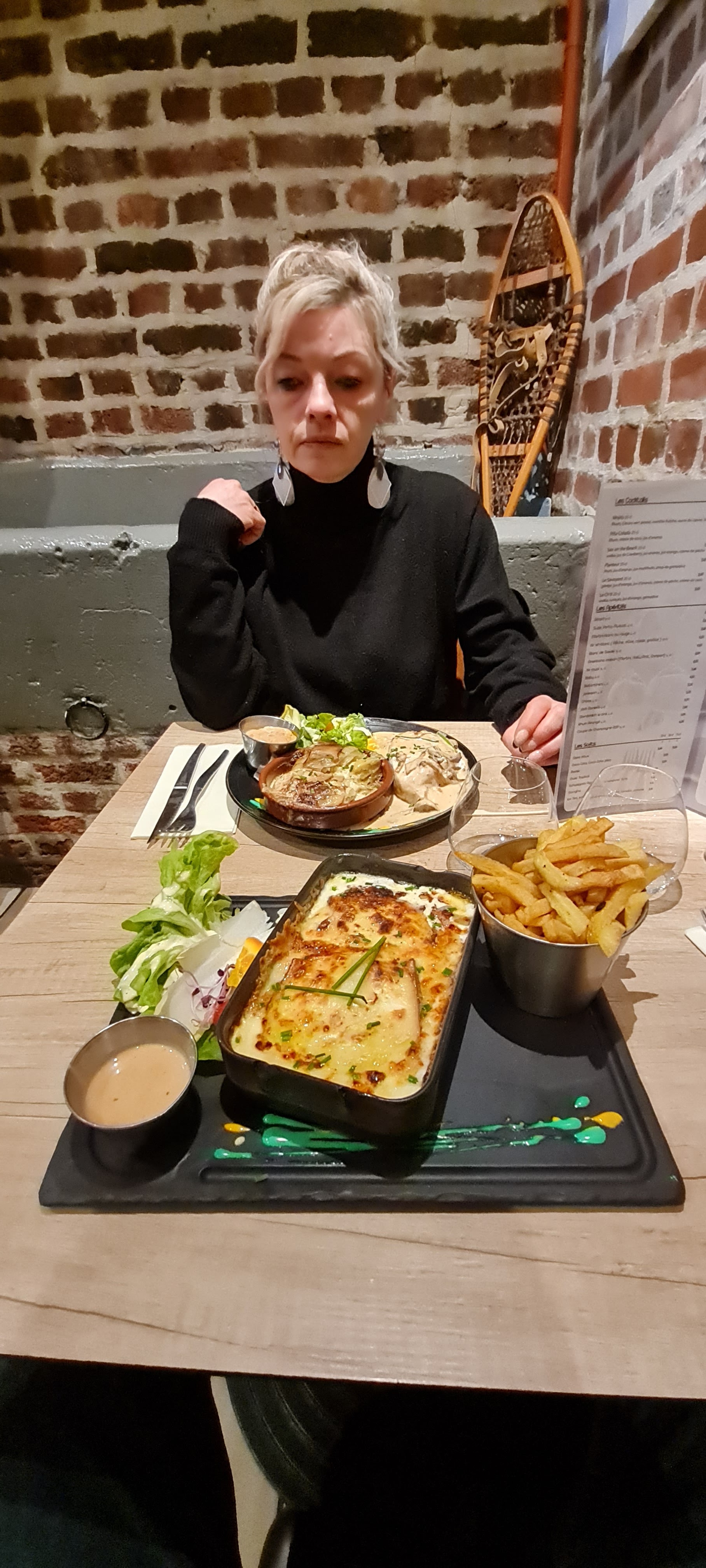 Le restaurant fait de nombreux plats. Nous avons aimé le menu chti savoyard. Le seul bémol est le fait que l'on ne puisse choisir sa place. Nous trouvons dommage que les places dans le couloir ne soient pas mieux abritées du vent.