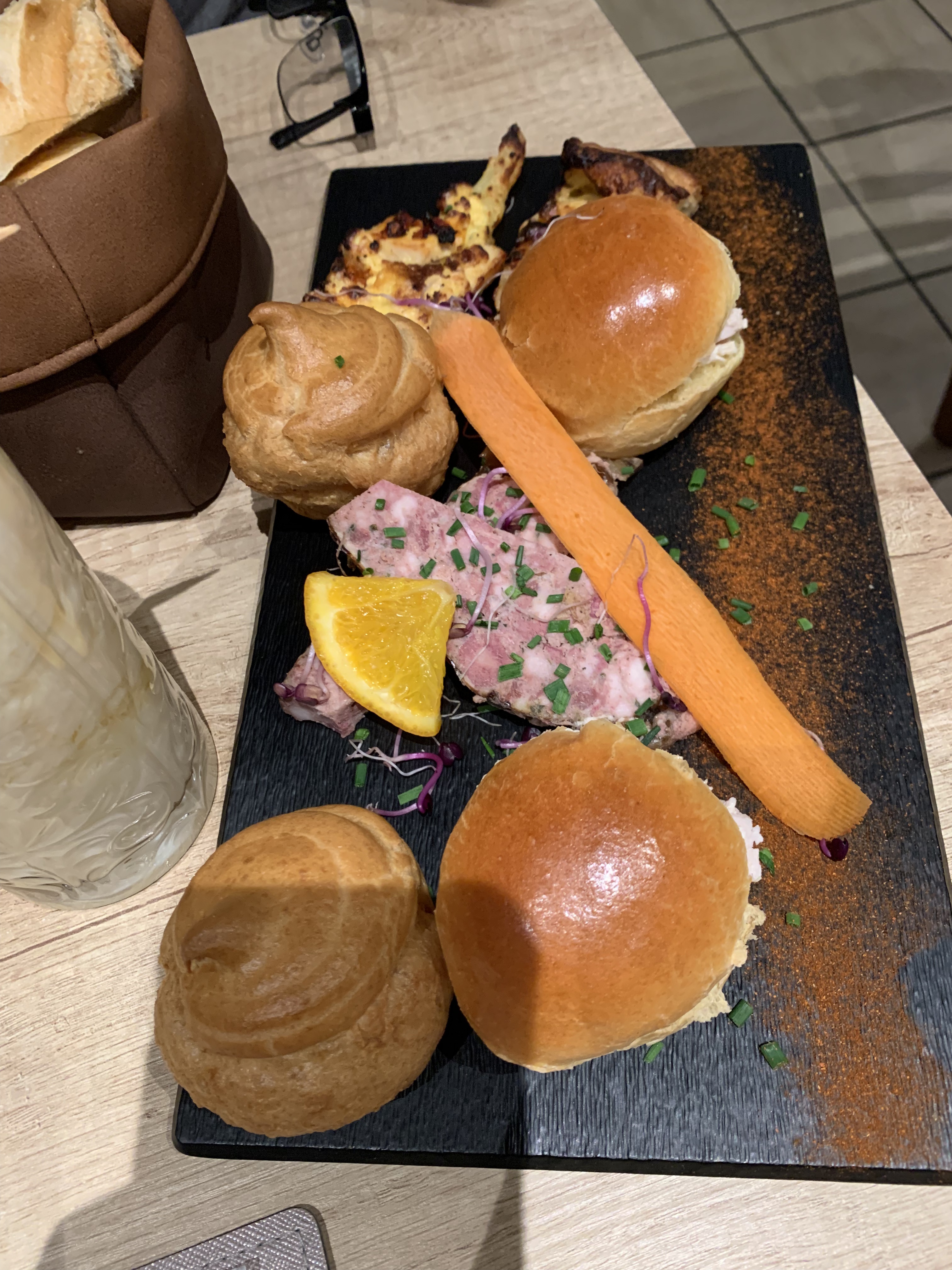 Il faut y aller et prendre le temps de partager les plats pour plusieurs personnes. C'est copieux et c'est bon ! Planche de charcuteries, ensuite viande sur plancha et fin avec café gourmand (voir photo), c'était super. Un grand merci à la serveuse pour sa gentillesse et la qualité de son service malgré le monde présent. Je recommande.